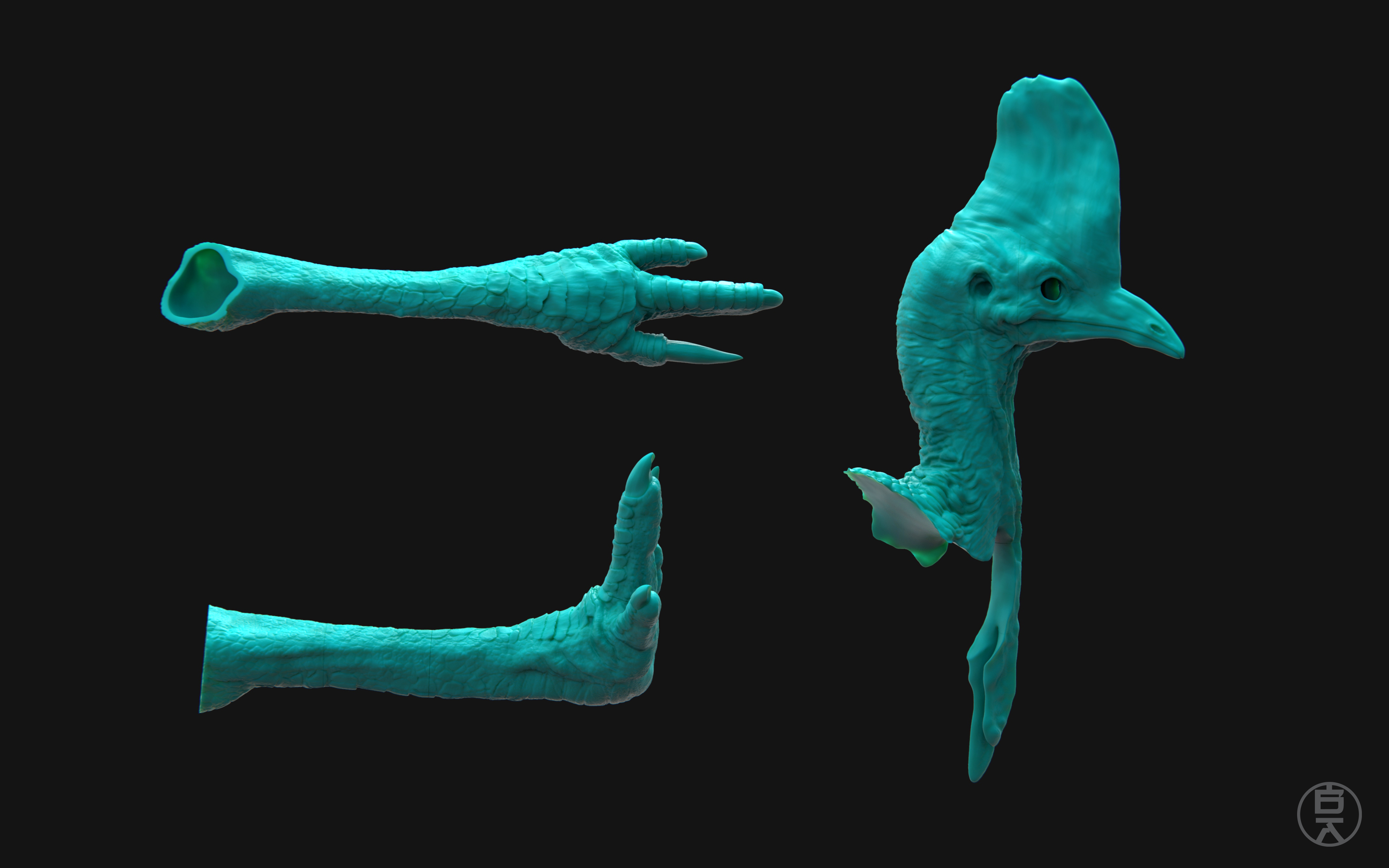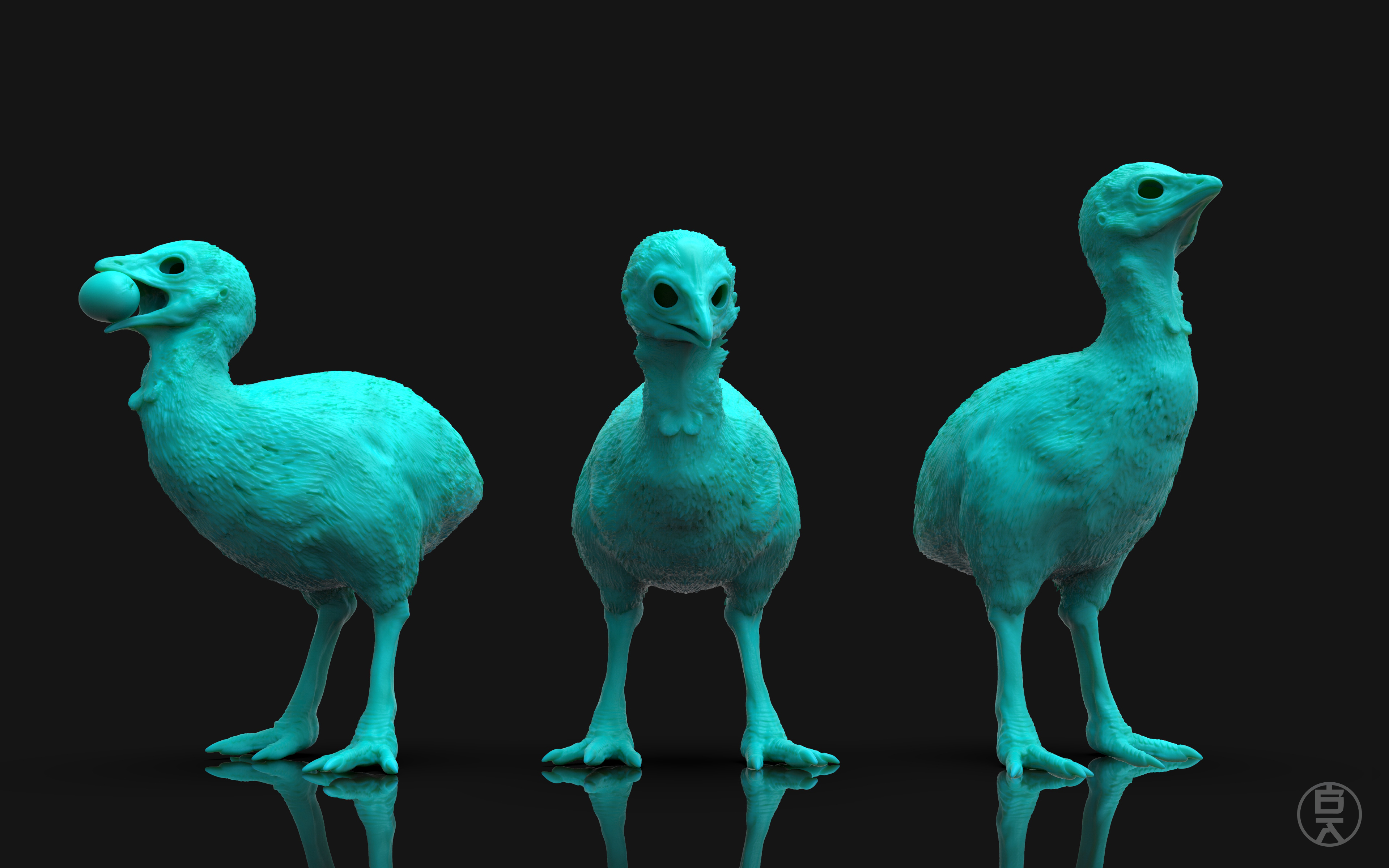 I had to sculpt and replicate a life size female Cassowary and her young, which was to be 3d printed and CNC machined to full scale. The main sculpture and textures were created in Zbrush, & then chopped up and printed on a Formlabs Form 2 3D Printer. Each piece was hollowed out and had keys/plugs to assist with assembly and weight.