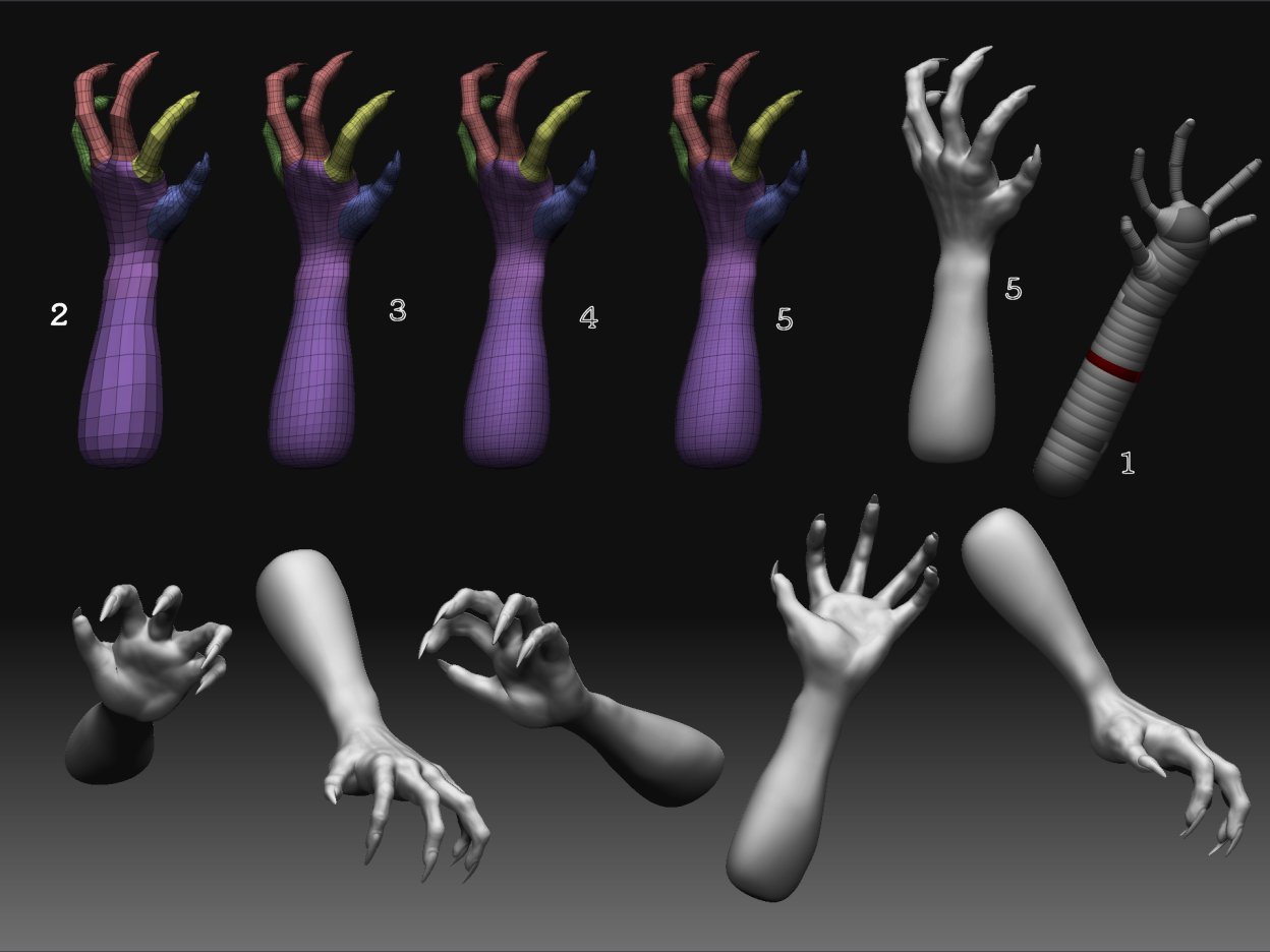 Since it’s pretty much right infront of you while you while you sculpt its a good start. Simply begin on low subdivision levels and get the basic form. After that, slowly build up your way to the higher levels adding details where needed.