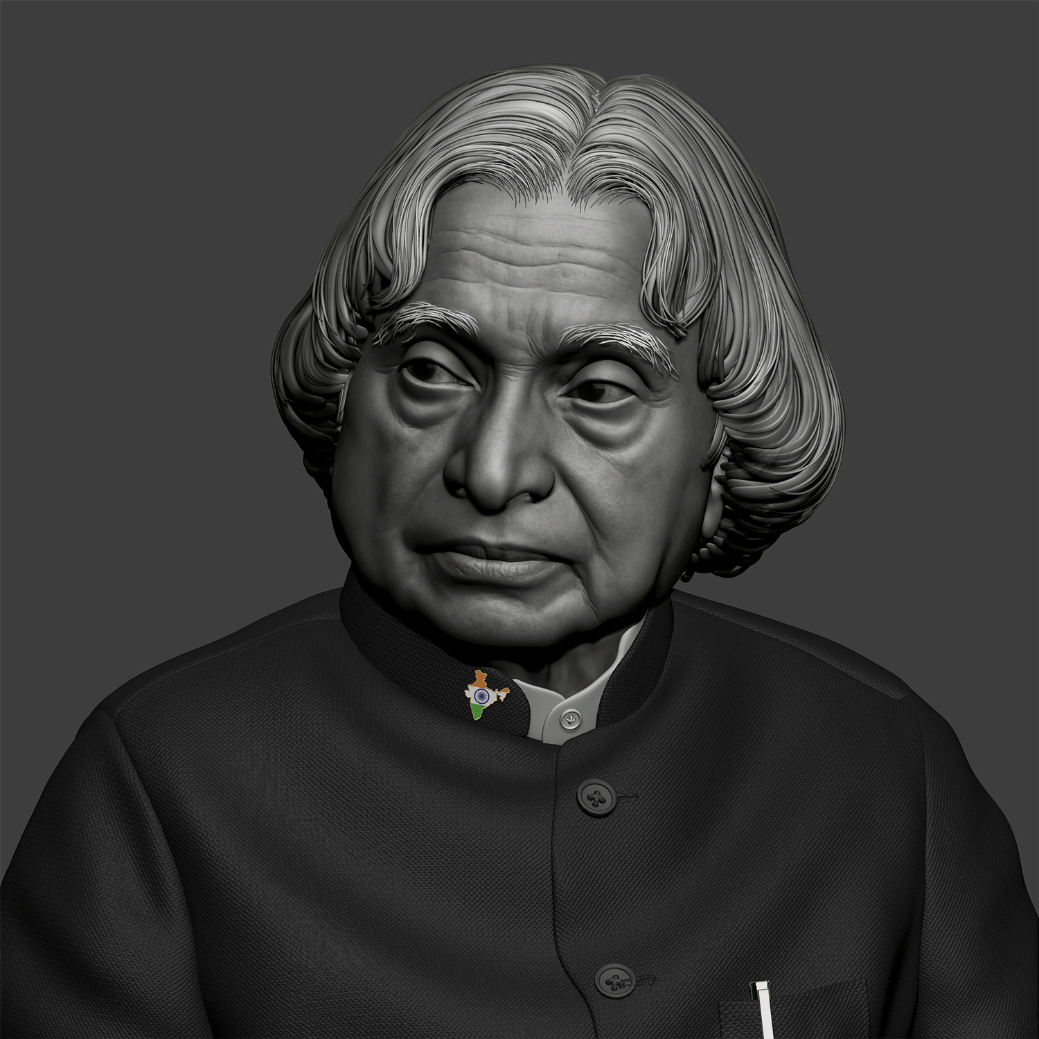Inspired by the life and legacy of India’s People’s President, I’ve created this 3D digital portrait of Dr. APJ Abdul Kalam. This project was a journey of capturing not just his physical likeness, but the wisdom and humility that he radiated.
