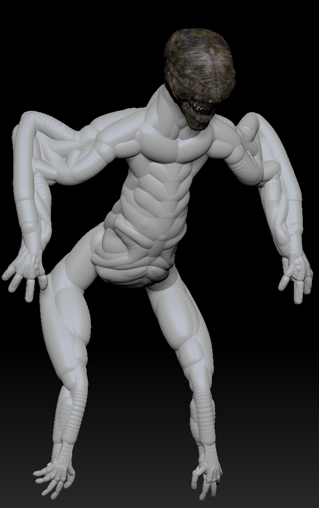 Hello im Vinnz, i started Zbrush about 2weeks ago and played around. Never worked for more then 30min on a object. I started this modell about 8hours ago, and didnt stop to work on it. No real idea about topology or proportions. I feel like i waste alot of space with random deformation istead of using it for detail with perpice. Ive seen videos and i didnt manage to use the tools like ive seen. Making accurate, clea strokes building up, and making fine detail. I dont know how… Anyway i want to finish that modell to be my fhirst, finished object. I started with a Sphere and used about 500.000 Polygons. What do you guys think? Any suggestions? How long will it take util i can create amazing work like you guys do?