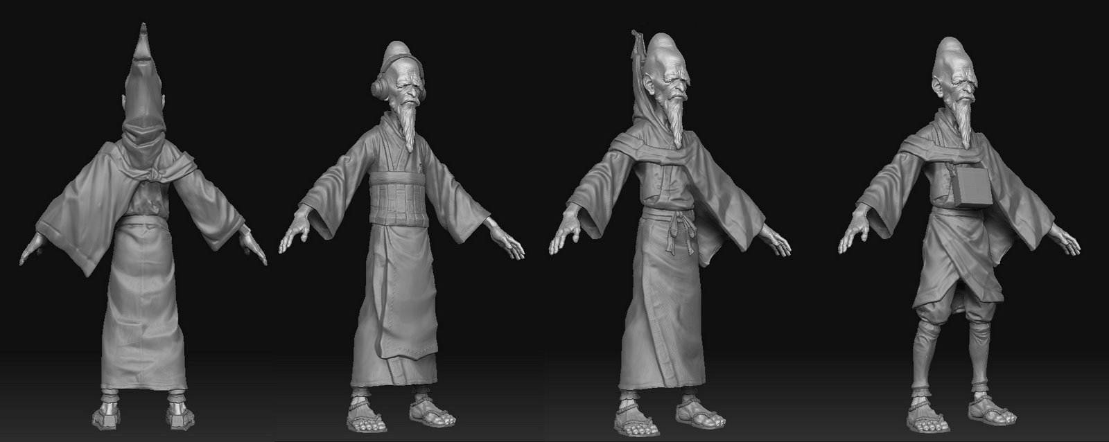 We wrote a shader that generates hatch marks, a graphic outline, rim light, among other things I don’t fully understand (didn’t write it, just used the tool)…as far as the texturing process goes, it was simple…after generating an ambient occlusion map, we would use that as the base for the diffuse color; since we knew it was a illustrated/graphic effect we were aiming for, we would mostly just use a wash approach as opposed to a ton of intricate detail…the only manual technique to approximate an illustrated look was to draw contour lines and highlights on the color map, just to push the hand drawn look…much of that was done by hand, but really the rendering engine was responsible for how it came together…we didn’t want that glossy appearance to our normal maps, perhaps just excluding spec acounted for that…