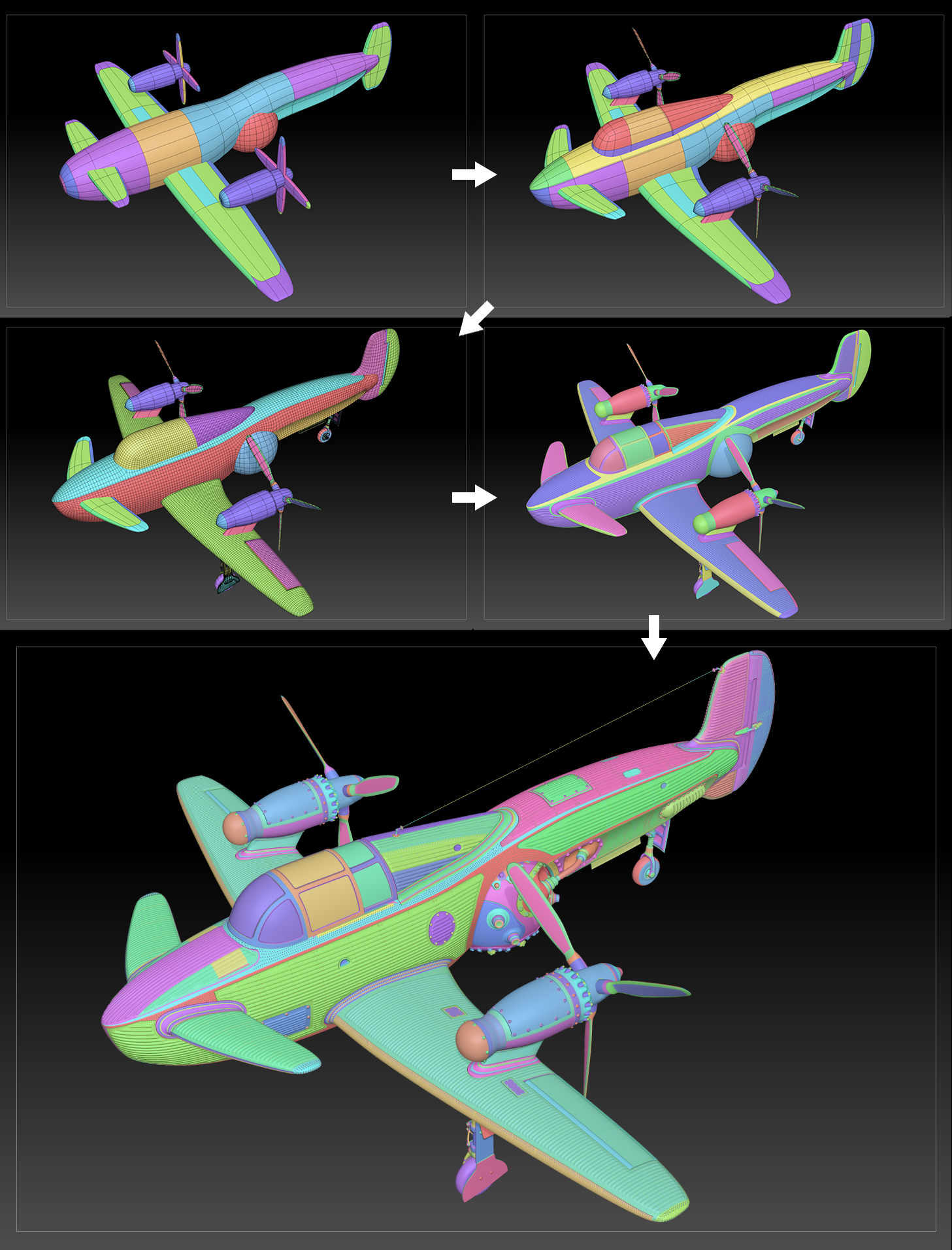 I modeled with ZModeler in low poly halfway. In the second half, we made high poly and modeled it with surface noise, insert mesh brushes, project primitive deformers, and so on.
