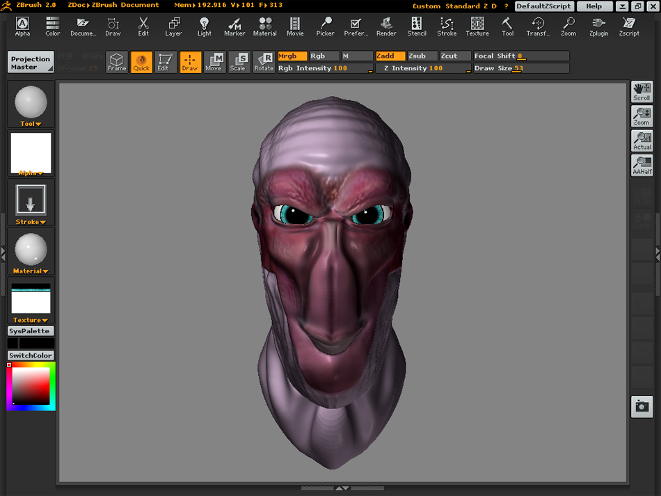 A little work on the skin of my alien friend here, still needs a lot of work on his texture.
