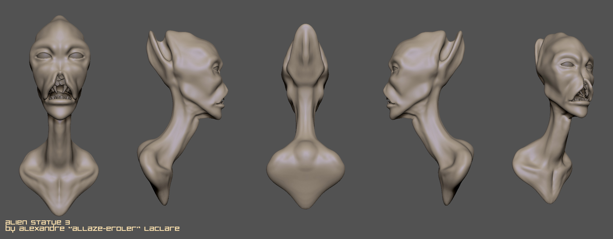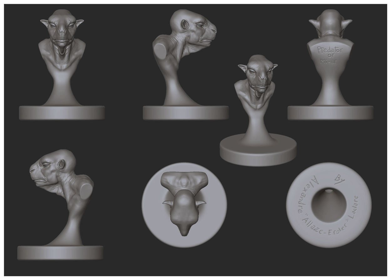 each alien statue will have his timelapse recorded with zbrush and his zip file.