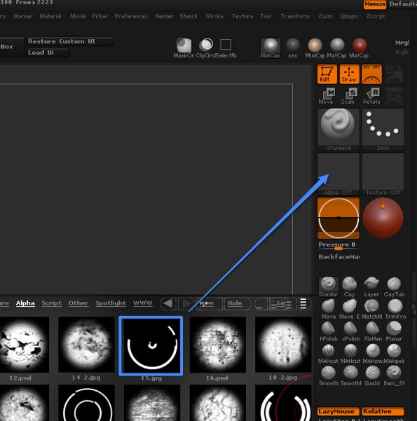 How do you load an alpha from the lightbox interface into the brush alpha selector?
