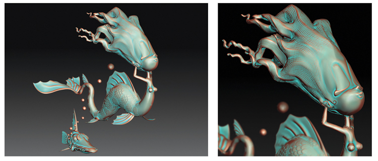 So, I look forward to playing with line, form, texture, color and the rest of the artistic elements with ZBrush. But enough windbaggery, here are my first sculpts: