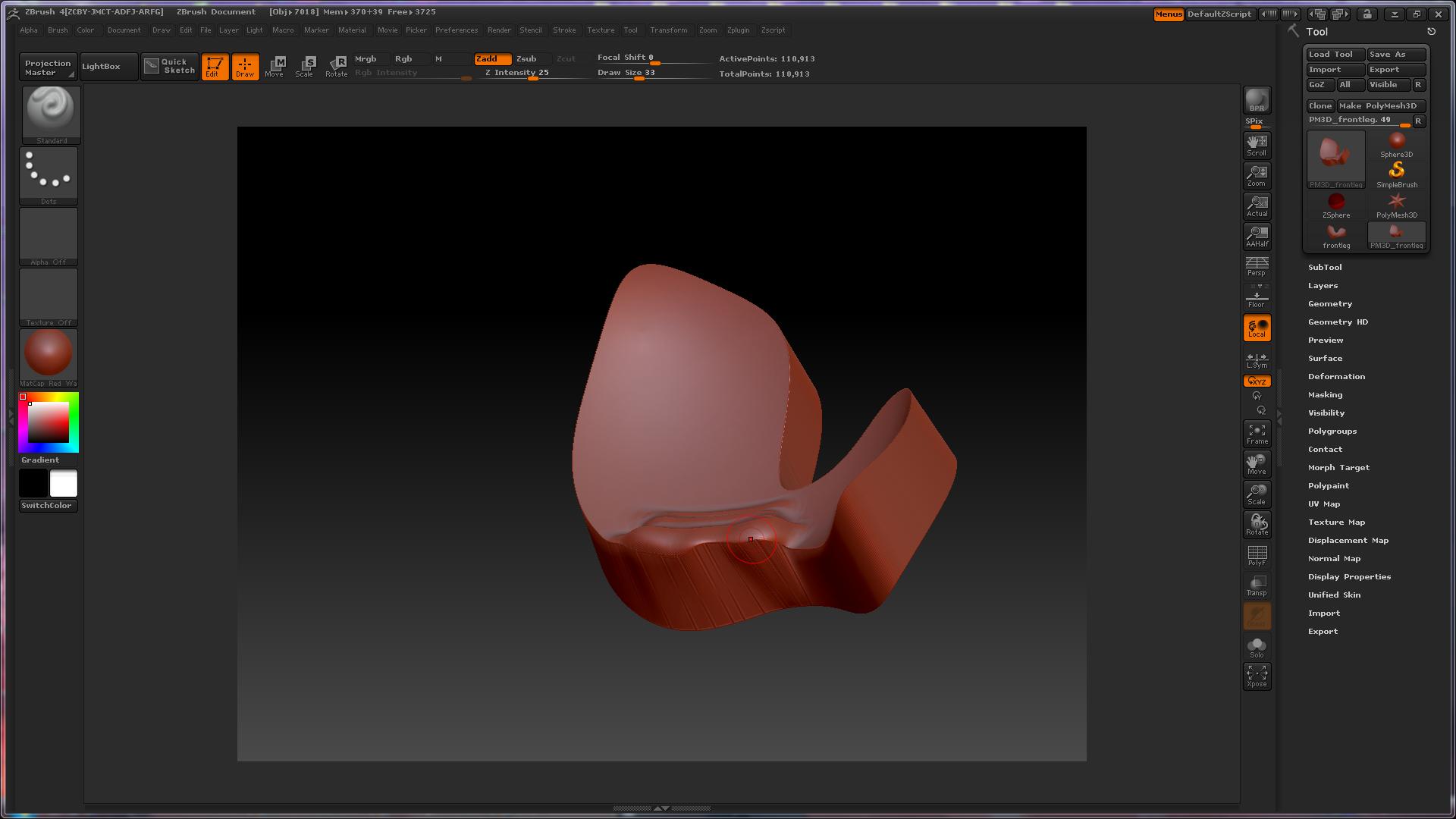I imported this obj part made in Rhino. I can’t add or subtract material on the sides of this part? You will see that they are un-effected when I try to add/subtract or smooth them out. When I try to smooth them they take on a dark shattered look. I can work with the top surface and bottom but not the sides? Why? Anybody know why? It’s comming in at a 130000 polygon count.