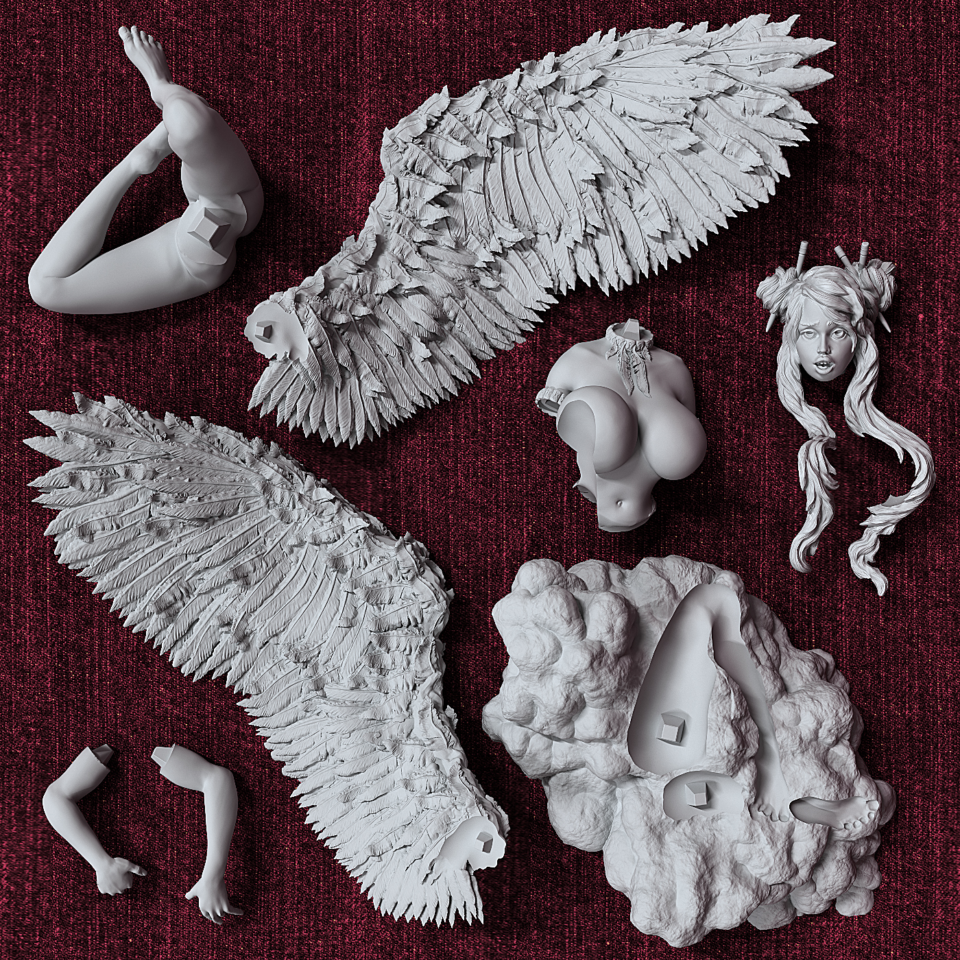 Athalia angel on a cloud, 3d model for 3d print