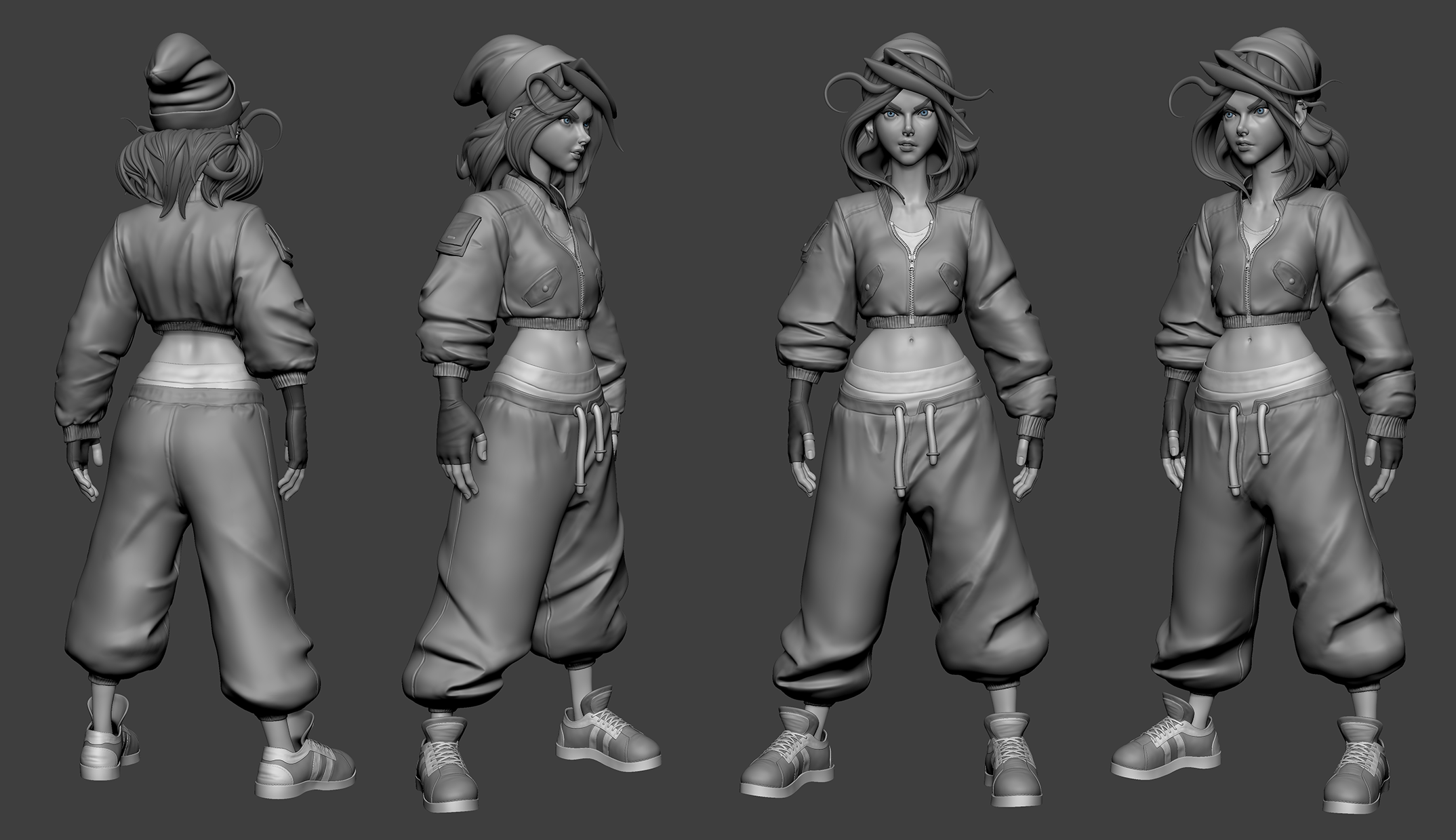 Sculpt in Zbrush, skin painted on zbrush, rendered in Marmoset.