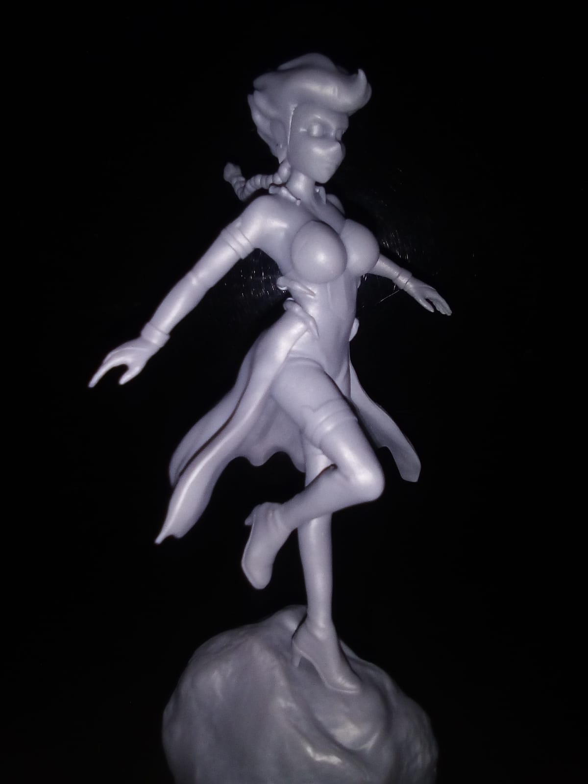 Baba Yaga statue, 13 cm. The master was printed with a Form2, then were made silicone molds and resin copies. It was made for Minigames Studio for the webcomic Drizzit. Model and render in Zbrush. Compositing in Affinity Photo.
