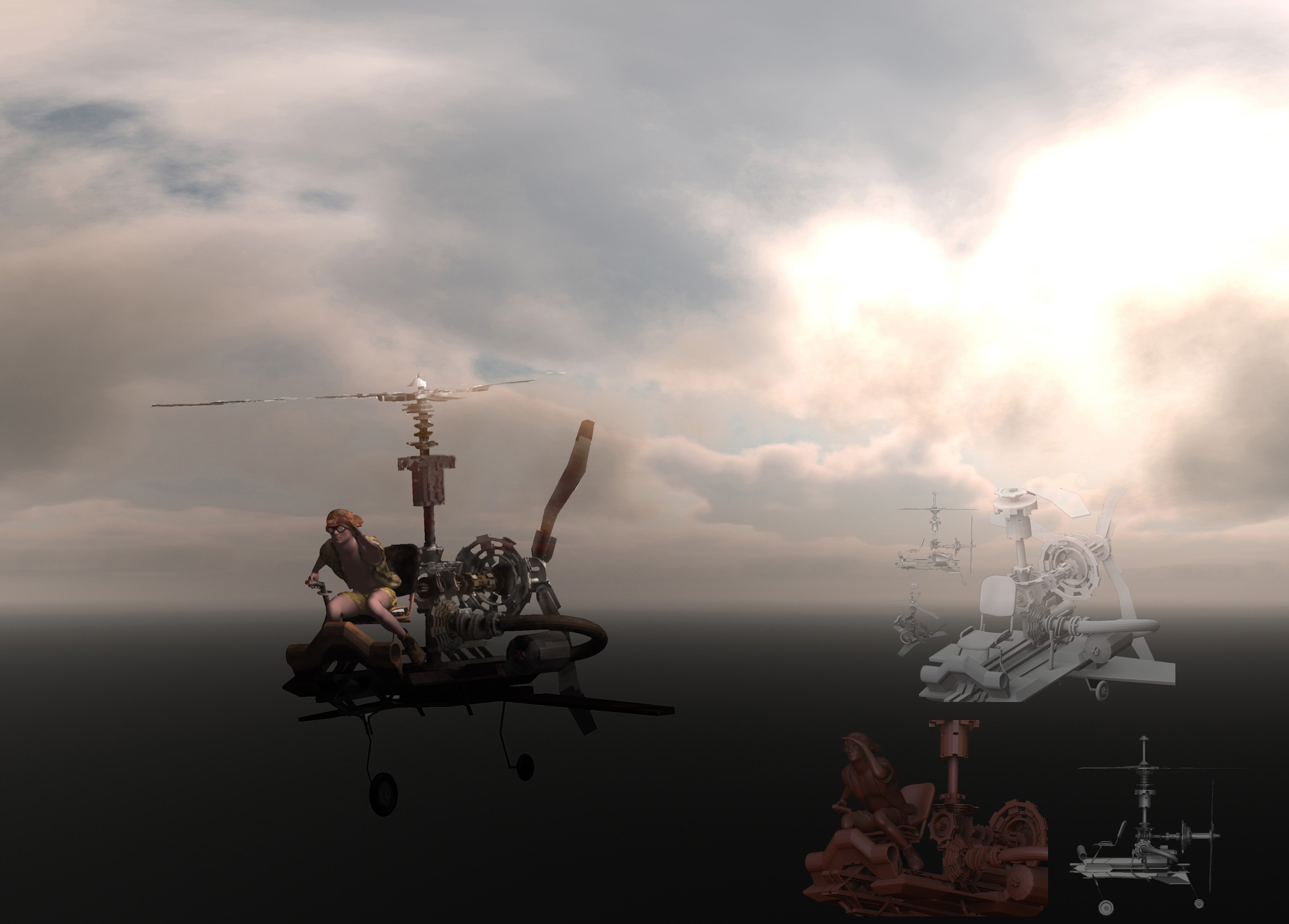 i really like the feel of this. maybe try some motion blur on the propellers.
