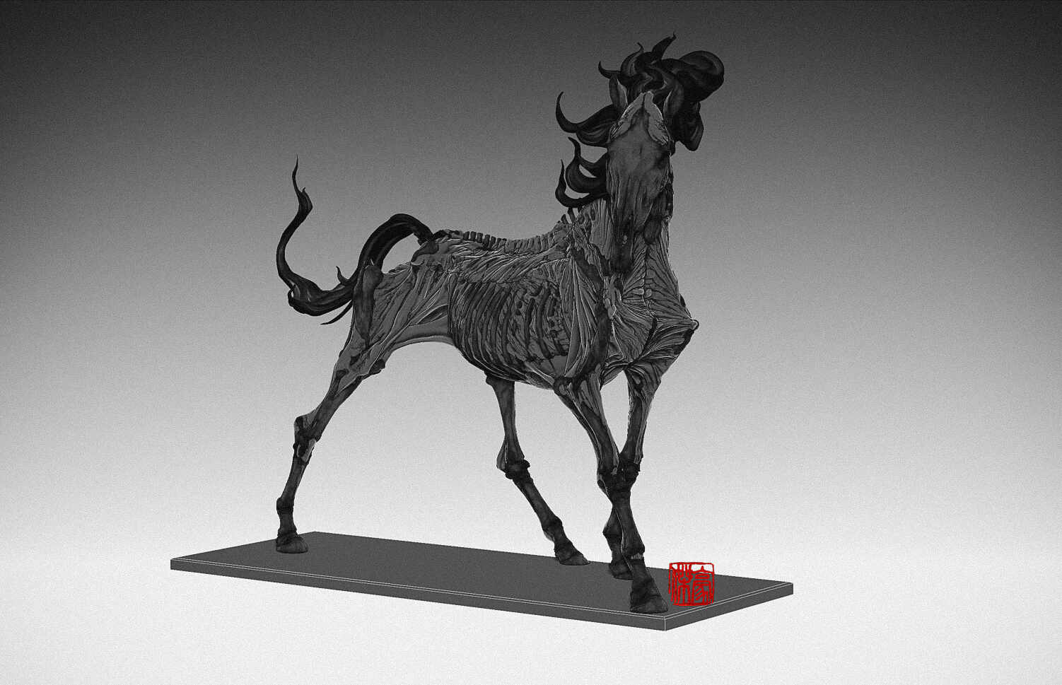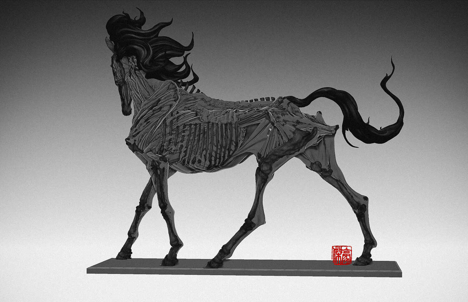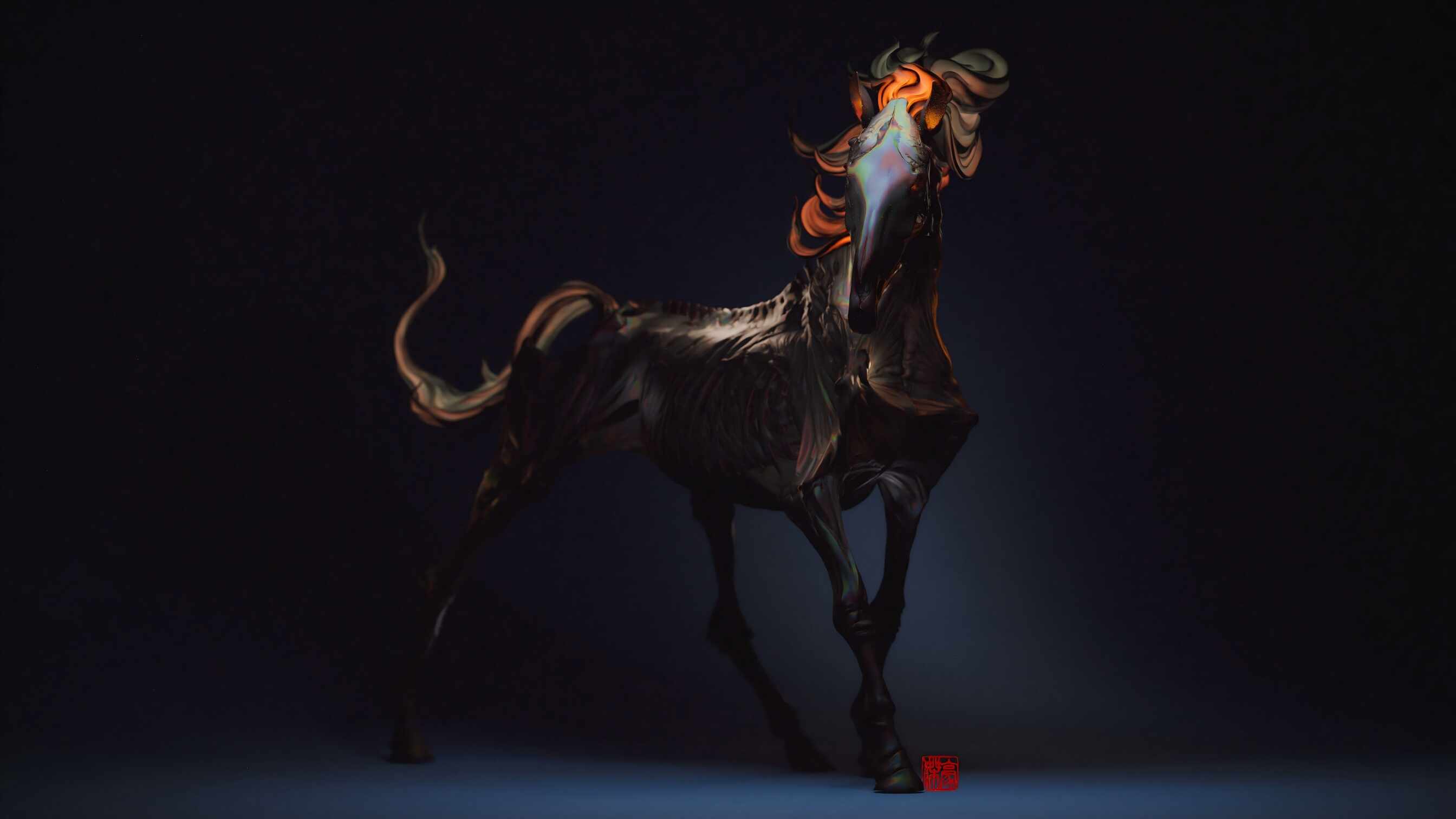 This horse was sculpted with a focus on achieving a harmonious balance of power and beauty, built upon a relatively accurate skeletal structure. After sculpting in ZBrush, the piece was rendered using Marmoset Toolbag lighting.