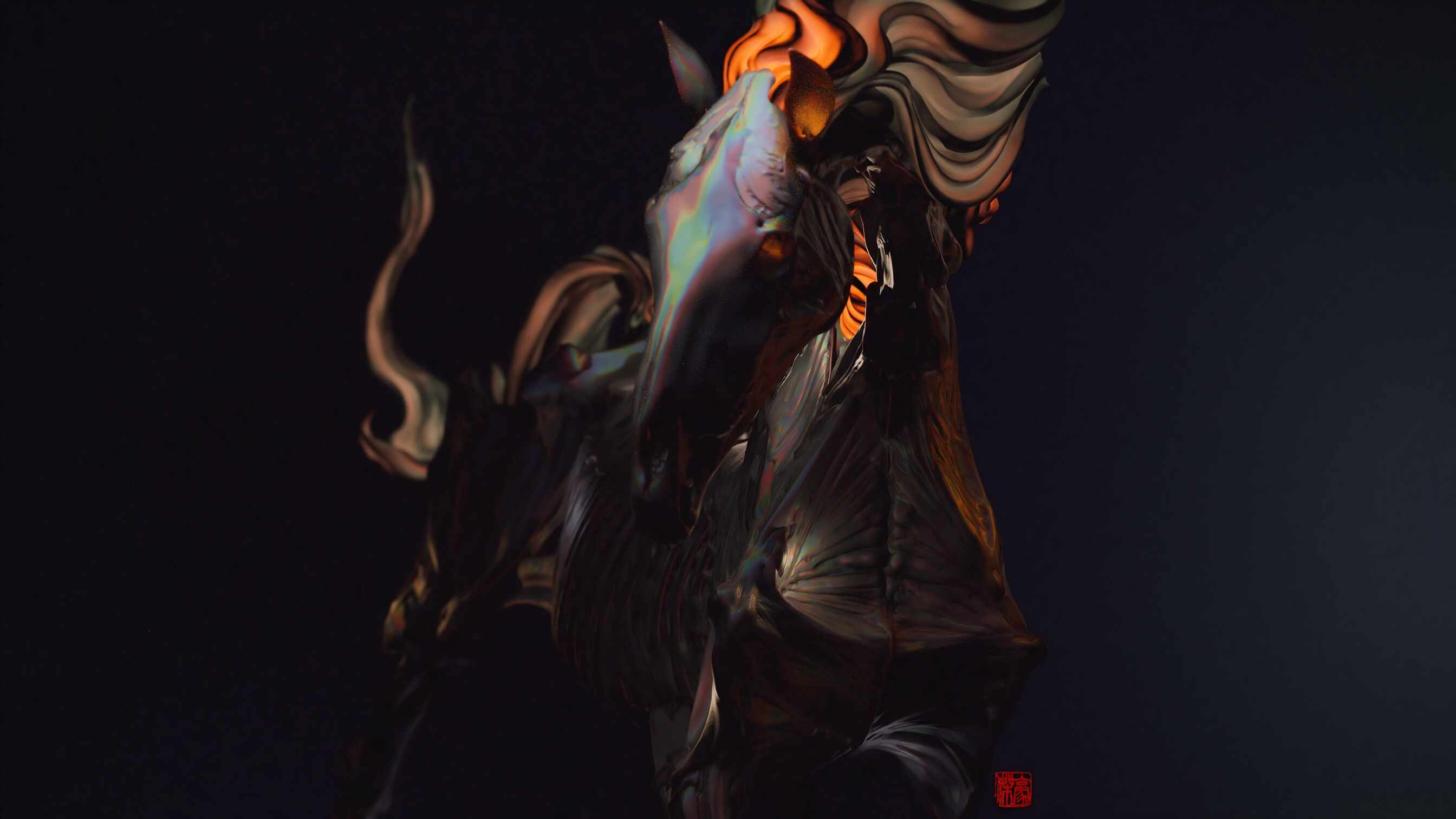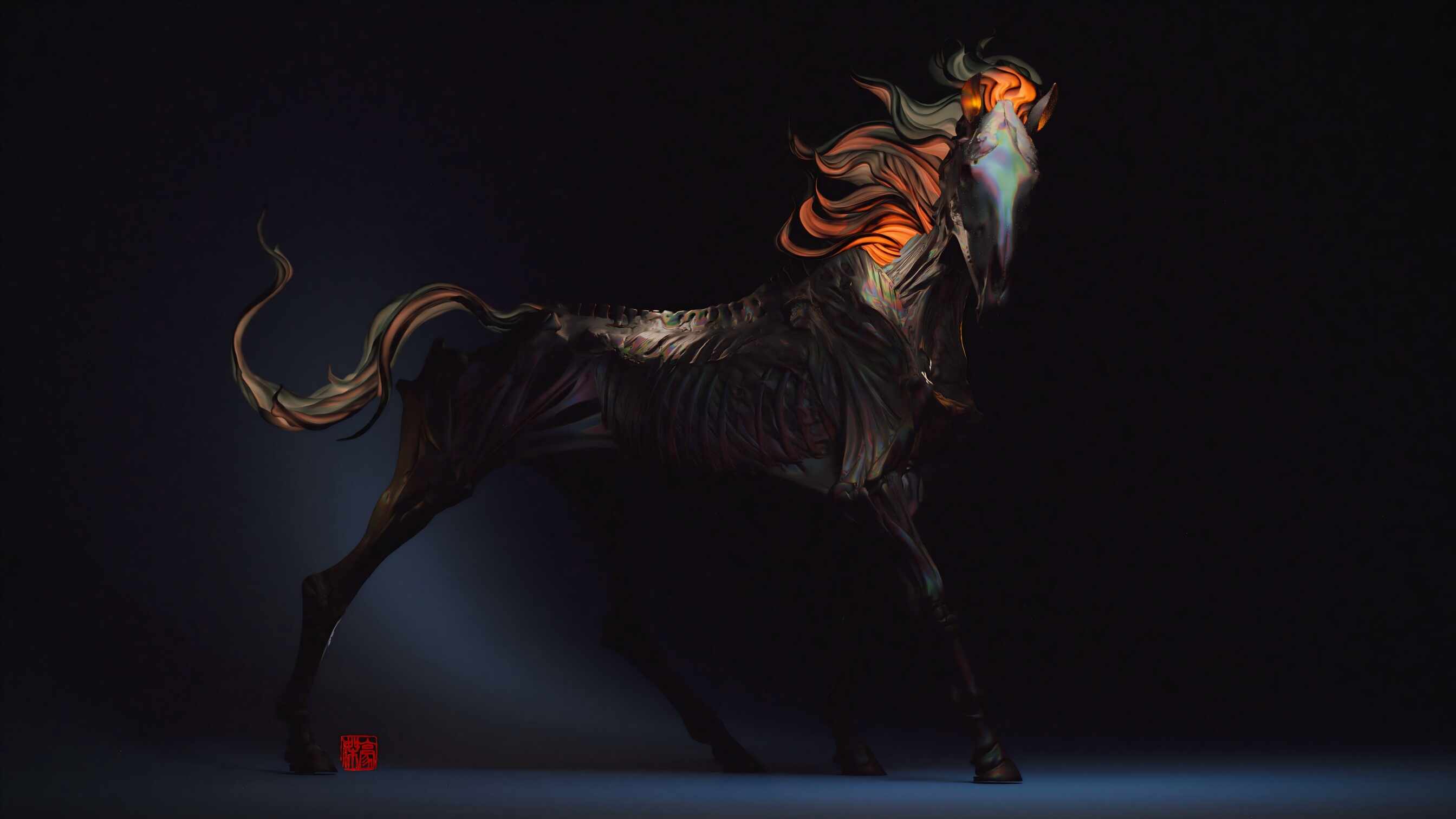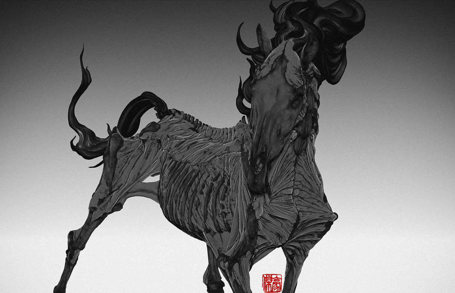 This horse was sculpted with a focus on achieving a harmonious balance of power and beauty, built upon a relatively accurate skeletal structure. After sculpting in ZBrush, the piece was rendered using Marmoset Toolbag lighting.