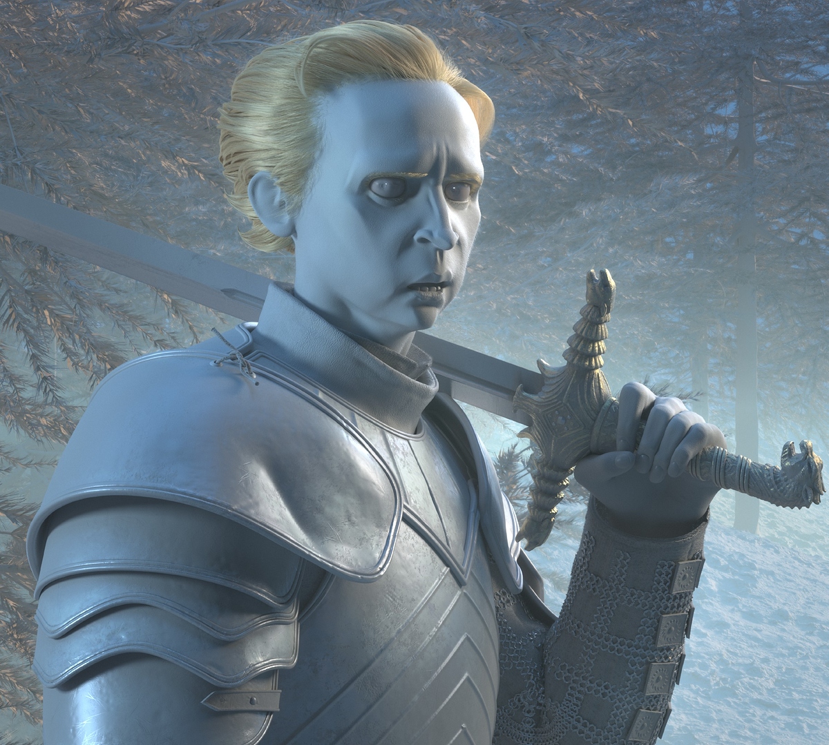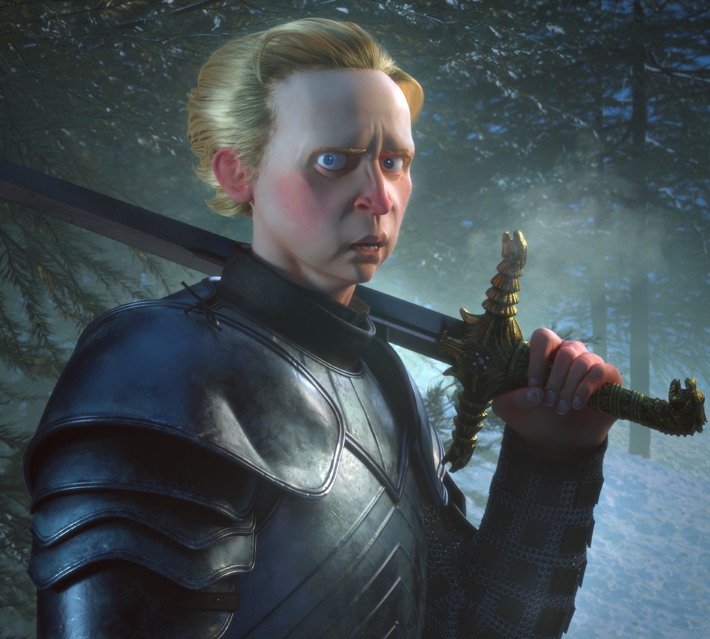 Ser Brienne of Tarth, from the popular children’s television program ‘Game of Thrones’. This is a stylized take on the character, based on an illustration by Ramón Nuñez.