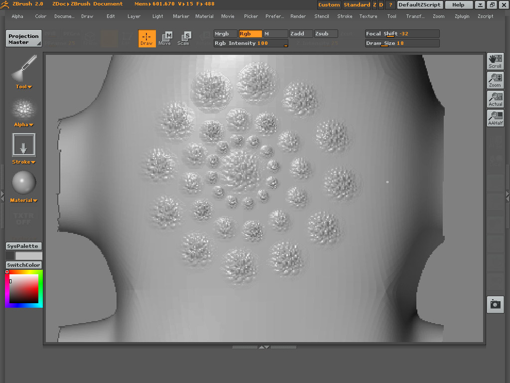 Ok this is pic of a zsphere model , level 7 - 1.2 million ploygons, I am not able to increase the levels - even though I ahve 1.5 gb of ram.
