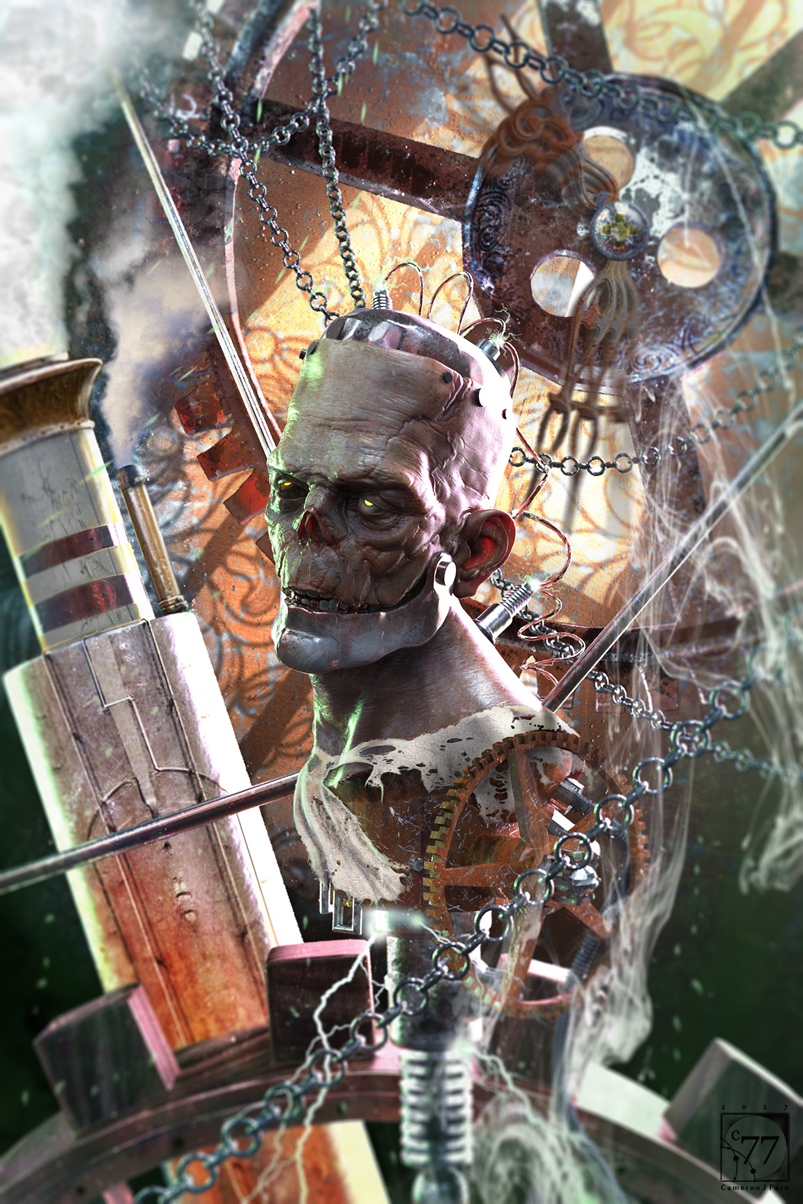 Never to early for a Frank Image. This one was created in ZBrush, Rendered in Key-shot and exported to PS to composite and paint…This take on Frankenstein’s Monster was developed for the wildly popular Confined Escape Rooms. You can find them on line… here’s to a great start to your new year.