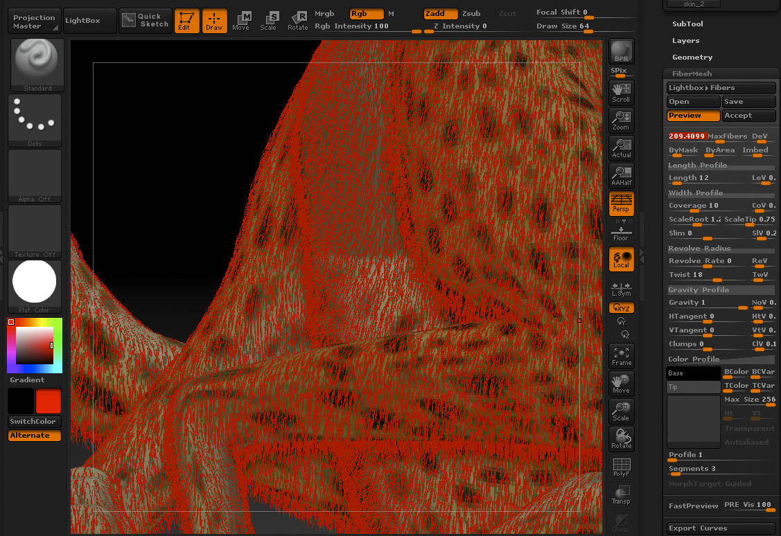I am doing a project where I want to make fur for an animal using fibermesh. I want to put the same colors on the fur as are on the underlying mesh. For example if I have a model of a cheetah with textured spots applied as a uv texture map to the base mesh I would like that color map to color the fibers as well. Is there a way to do this? Ideally I would like each fiber to be represented by a point in the same uv map as its parent mesh. That way I could take the fibers into another 3d program and render them with my existing texture.