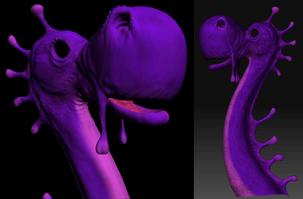 Once again to the right is a Zbrush render which looks fine but the LW render to the left is mushy and now I have the added issue of the low res color maps so even the painting is mush. Having it down res the color maps everytime I try to export it is driving me insane. I learned the last time to set the resolution in the texture window before exporting them but now that isn’t working it drops it to 1024x1024 no matter what I set it at everytime I hit the clr>txr.