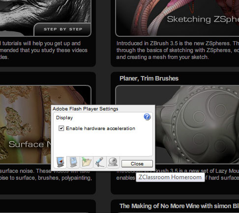 We have very restricted internet access and aren’t able to see some of the new ZClassroom videos. The videos on noise are showing up, but none of the hard body tool videos or new ZSphere videos are making it through our firewall. I looked at the source code but can’t determine where the videos are located as they are buried in a Flash movie.