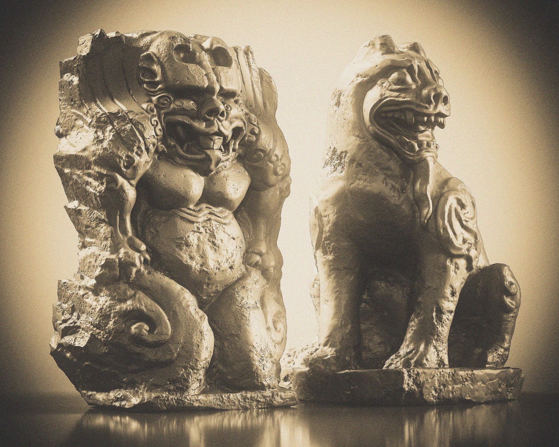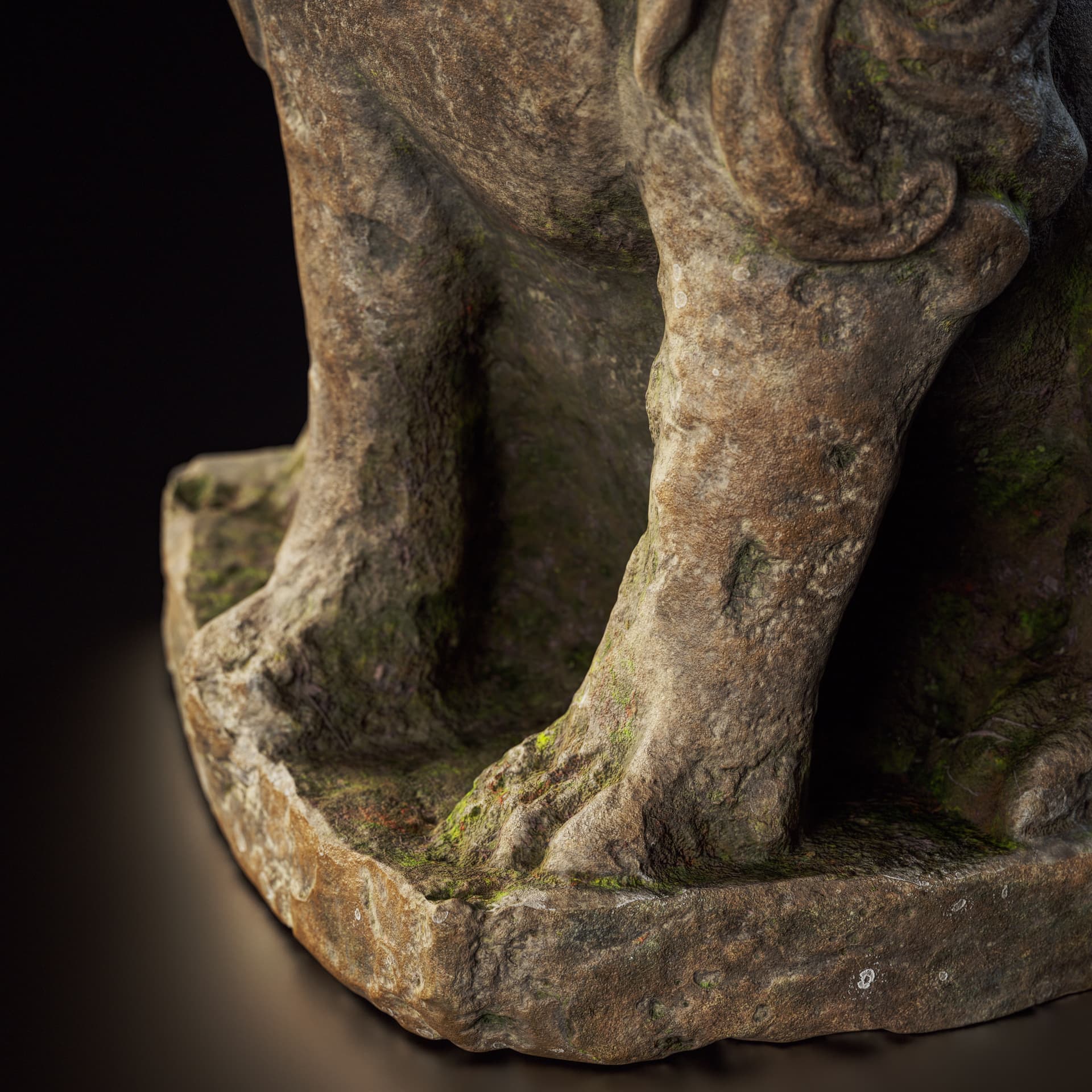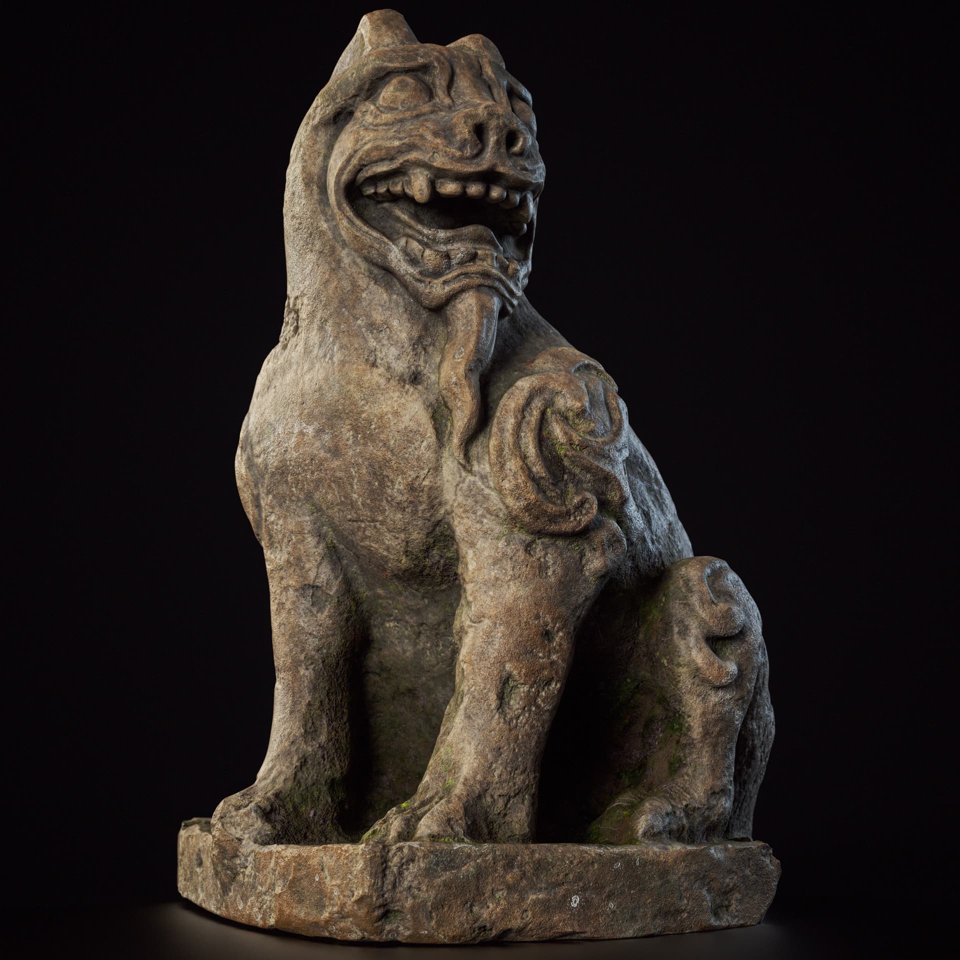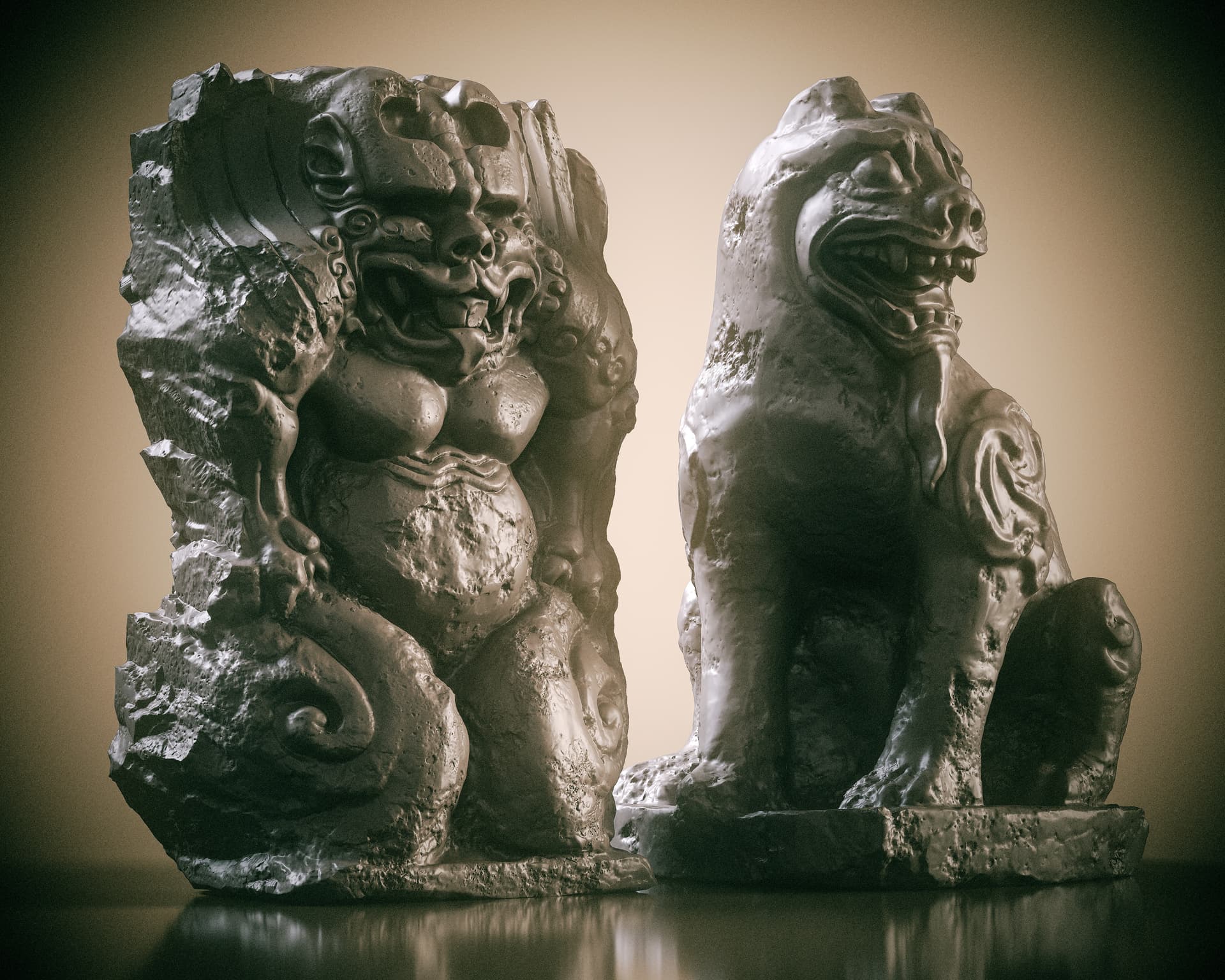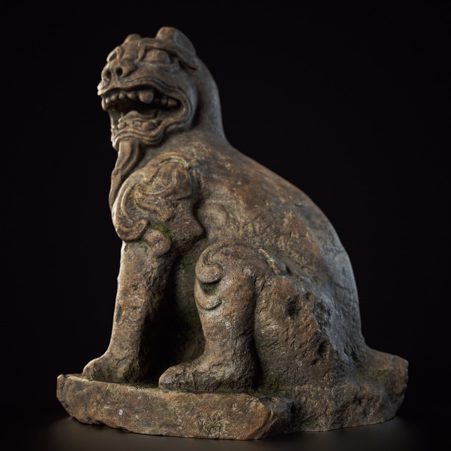 This is a set of Chinese stone carvings I made. I sculpted it in ZBrush, painted the textures in Sprites, and rendered it with Marmoset Toolbag 5. It took me about a day in total. I handled the weathering and erosion, aging and mottled appearance of the stone to make it look more historical.
