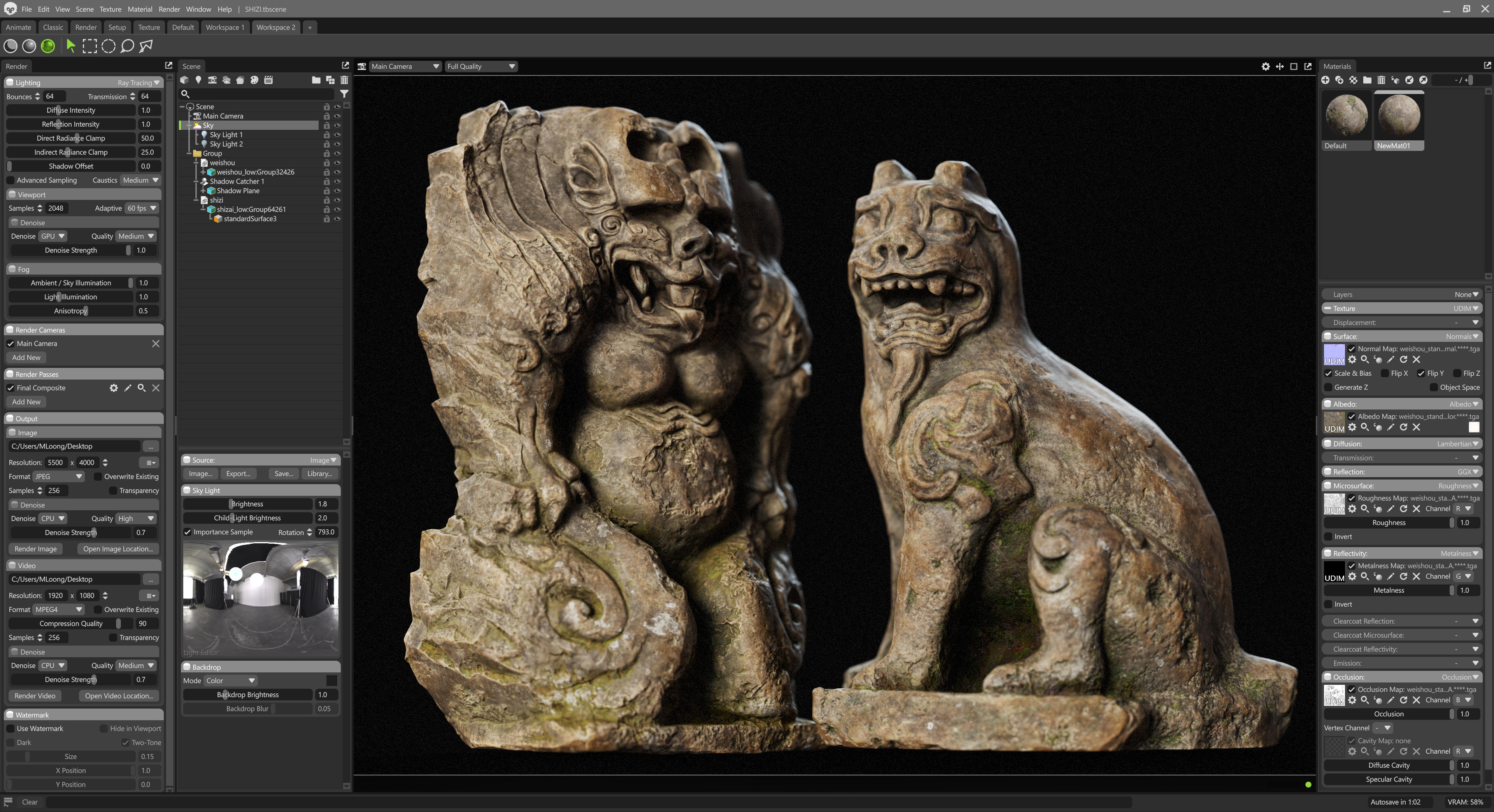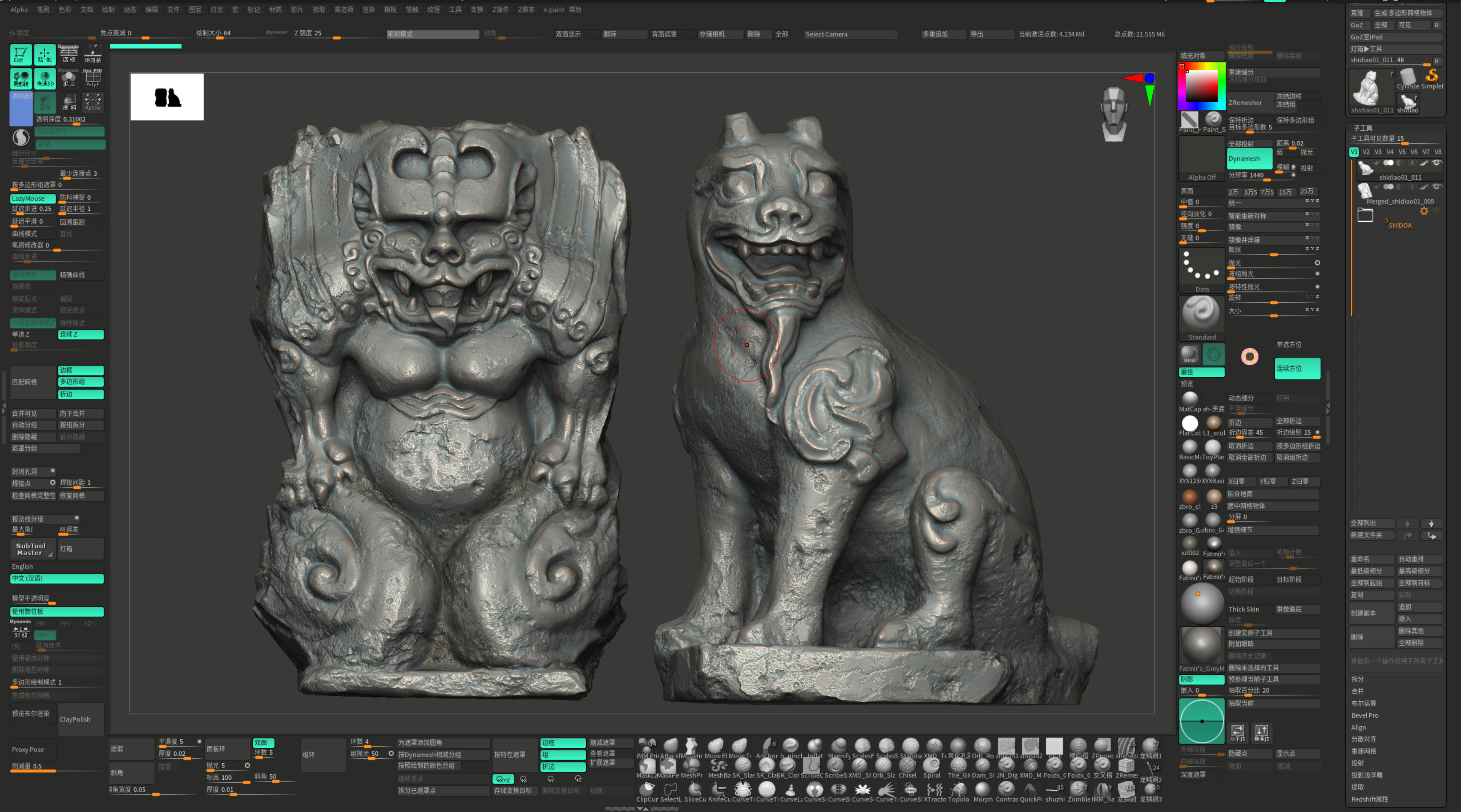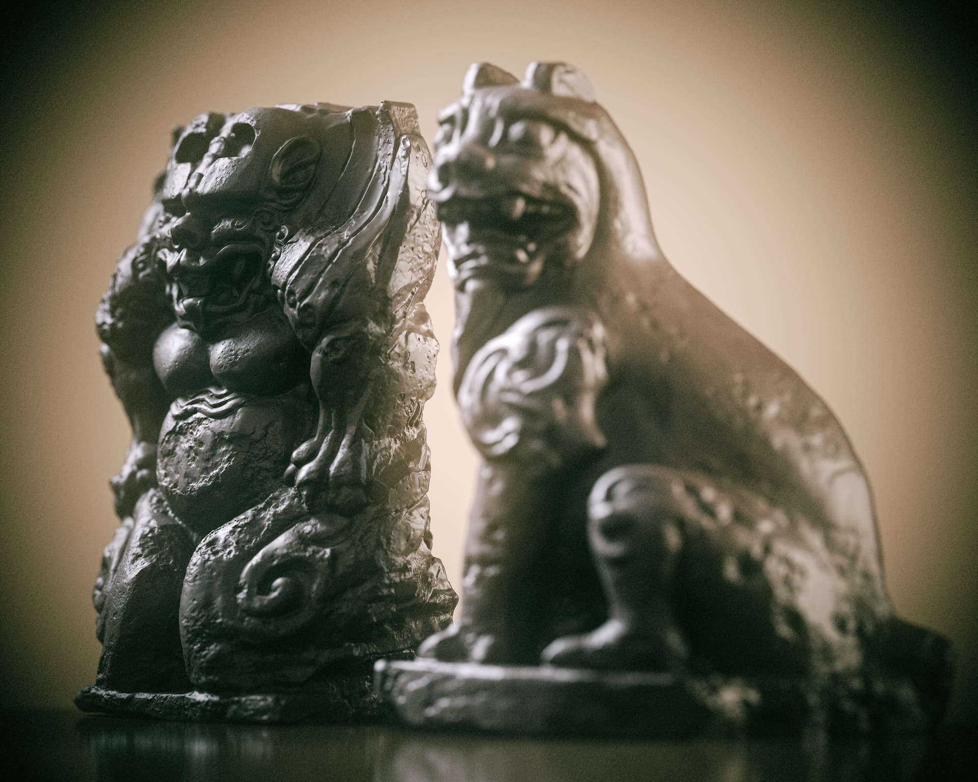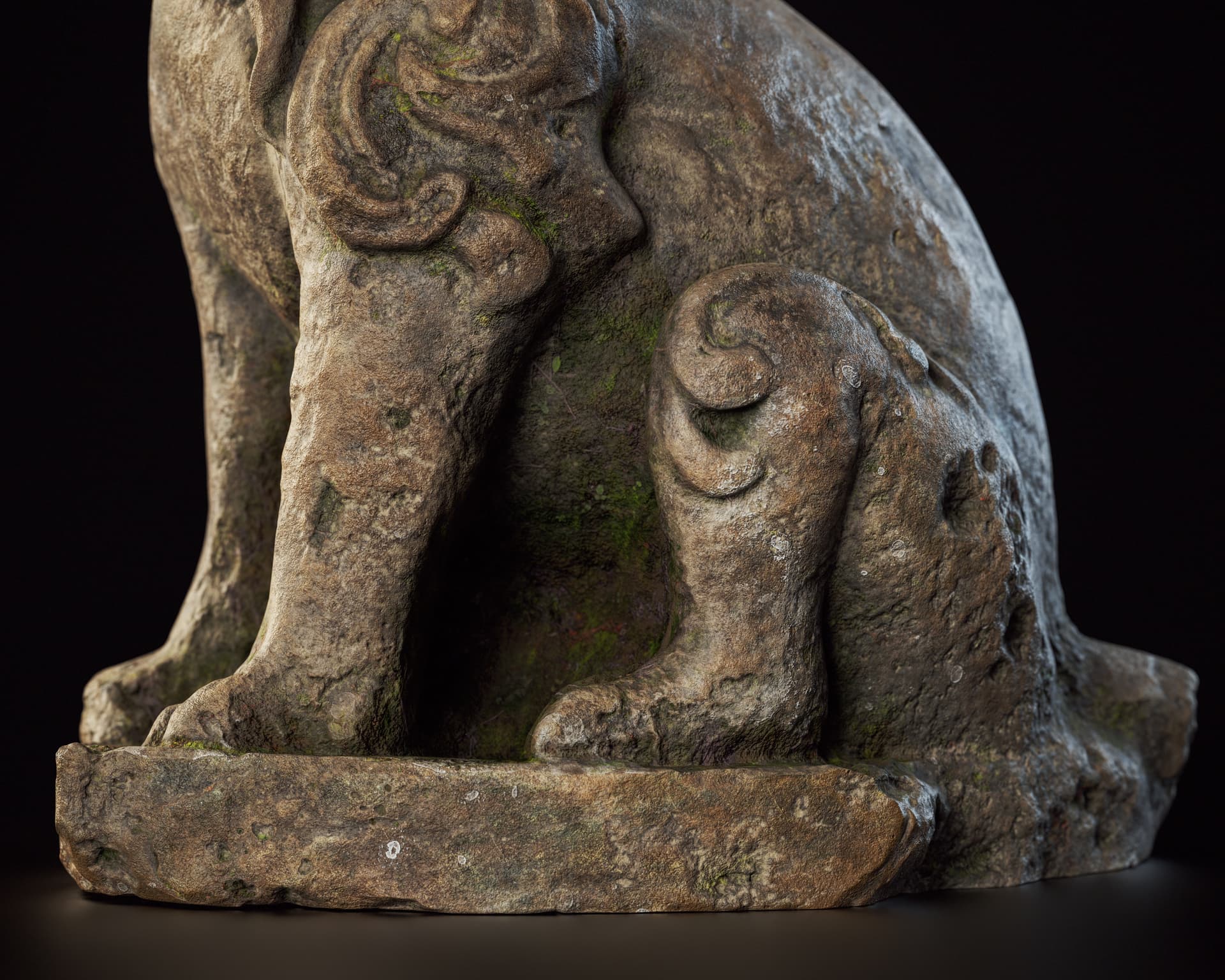 This is a set of Chinese stone carvings I made. I sculpted it in ZBrush, painted the textures in Sprites, and rendered it with Marmoset Toolbag 5. It took me about a day in total. I handled the weathering and erosion, aging and mottled appearance of the stone to make it look more historical.