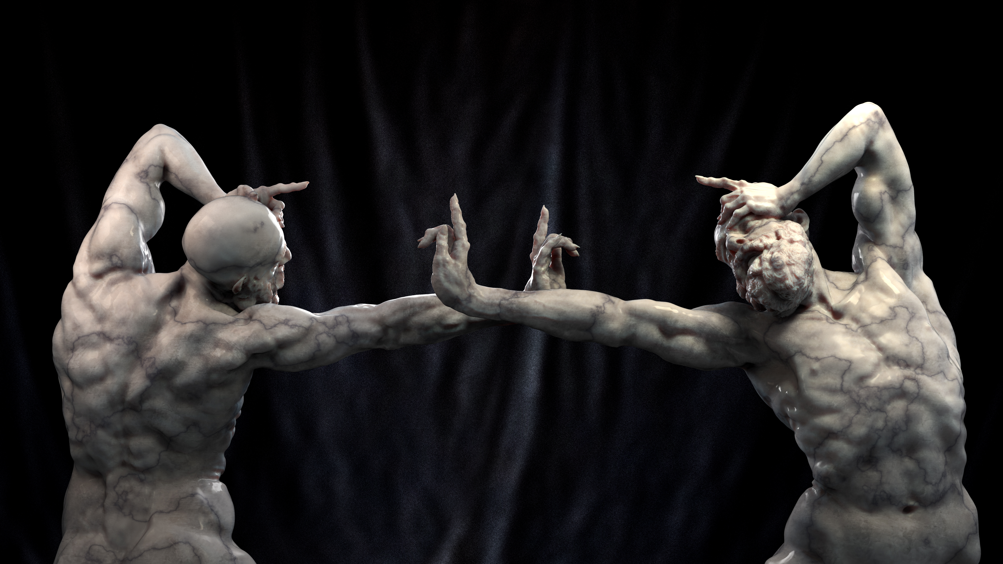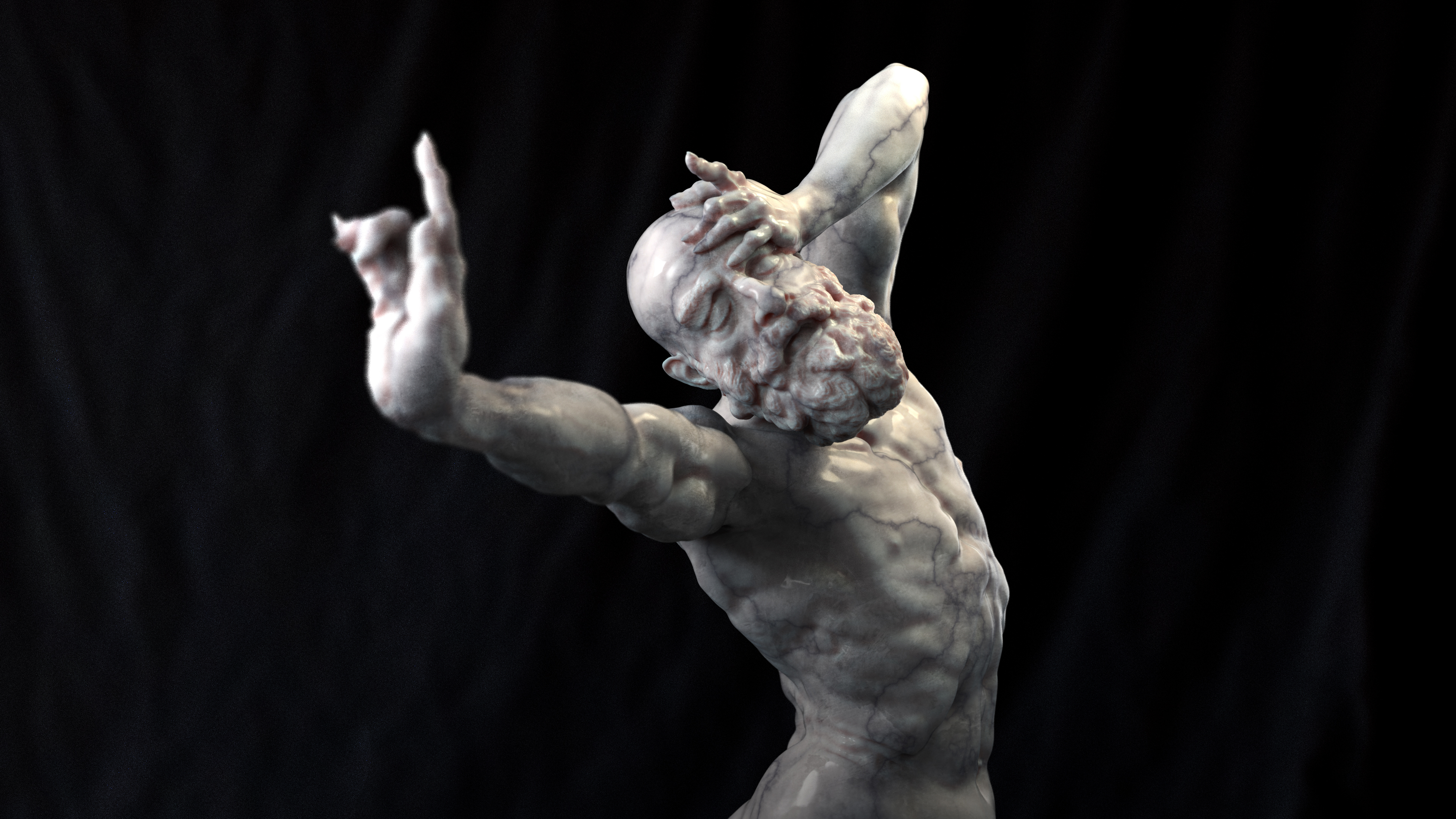 The main idea of the project was to practice anatomy through a pose, I wanted to create a sculpture with an uncomfortable and tense body position, to show emotion through his figure.