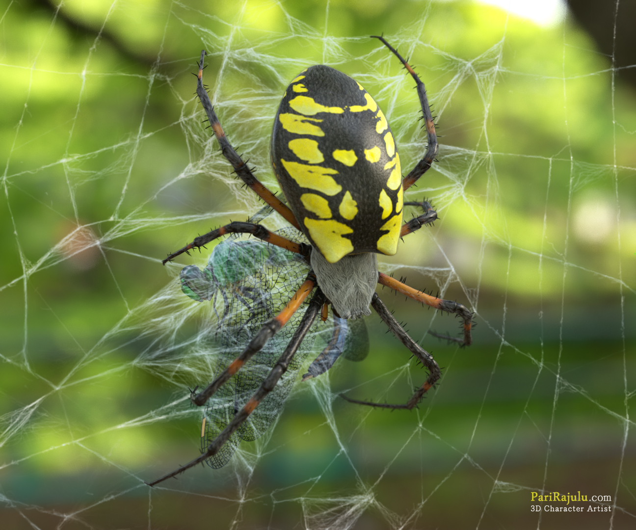 I initially tried creating the web in Maya using a third party tool, but wasn’t able to acquire the desired look. So, I painted the web in Photoshop instead.