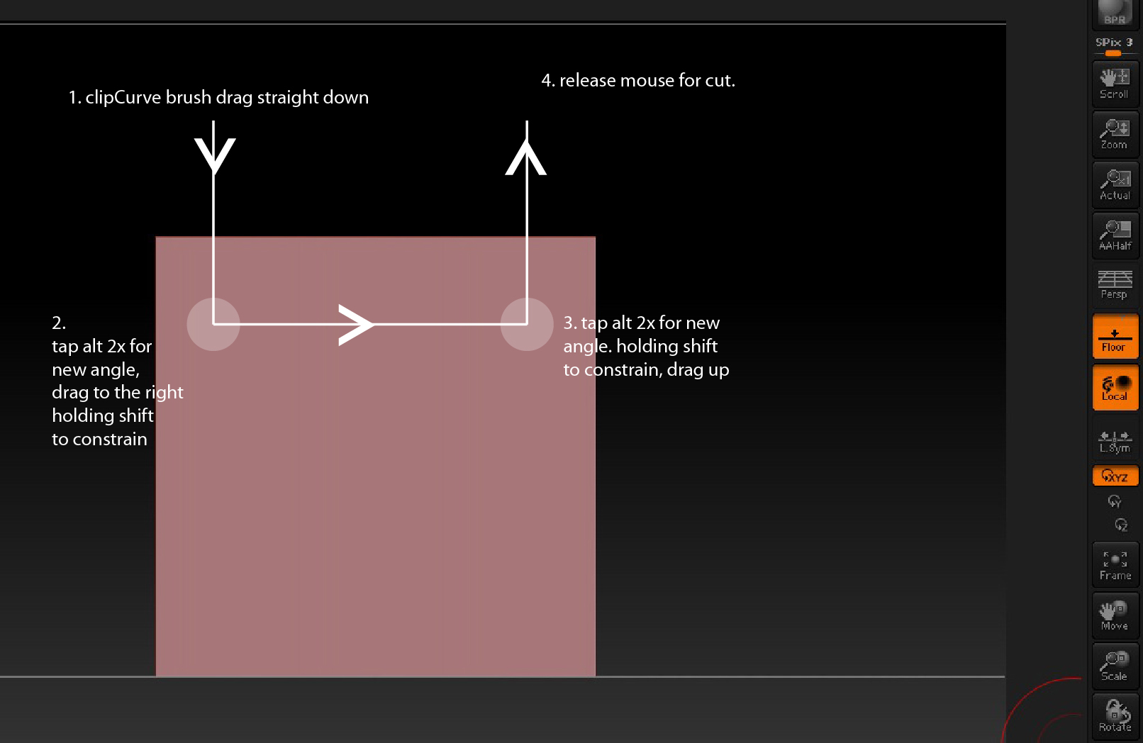 - Start the Clip stroke downwards. Once started you can let go the keys and then hold Shift to constrain to the vertical.