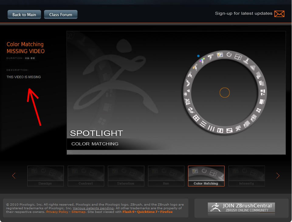 Just wondering if Pixologic is aware of the Color Matching-Missing Video problem in ZClassroom (Spotlight) series. It just duplicates “Hue” video instead.