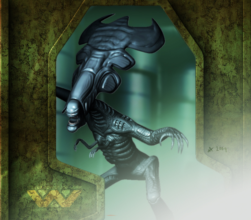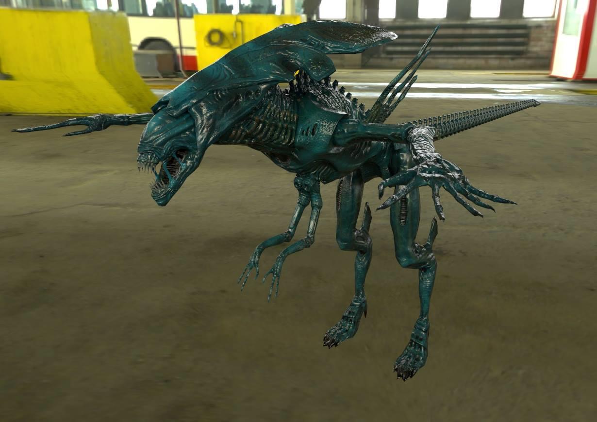 I love the bump mapped alien queen, and the dog biting that poor guy is