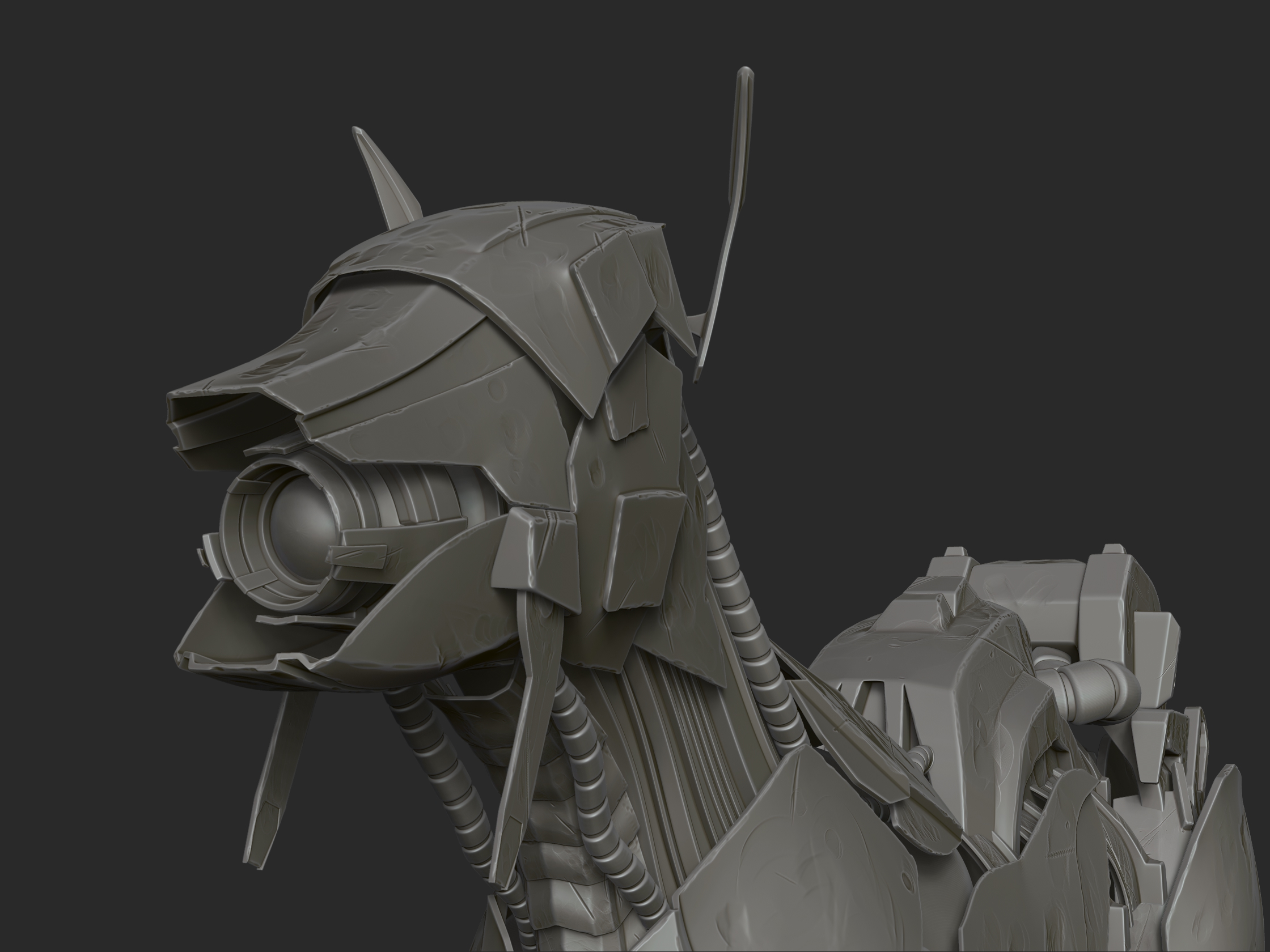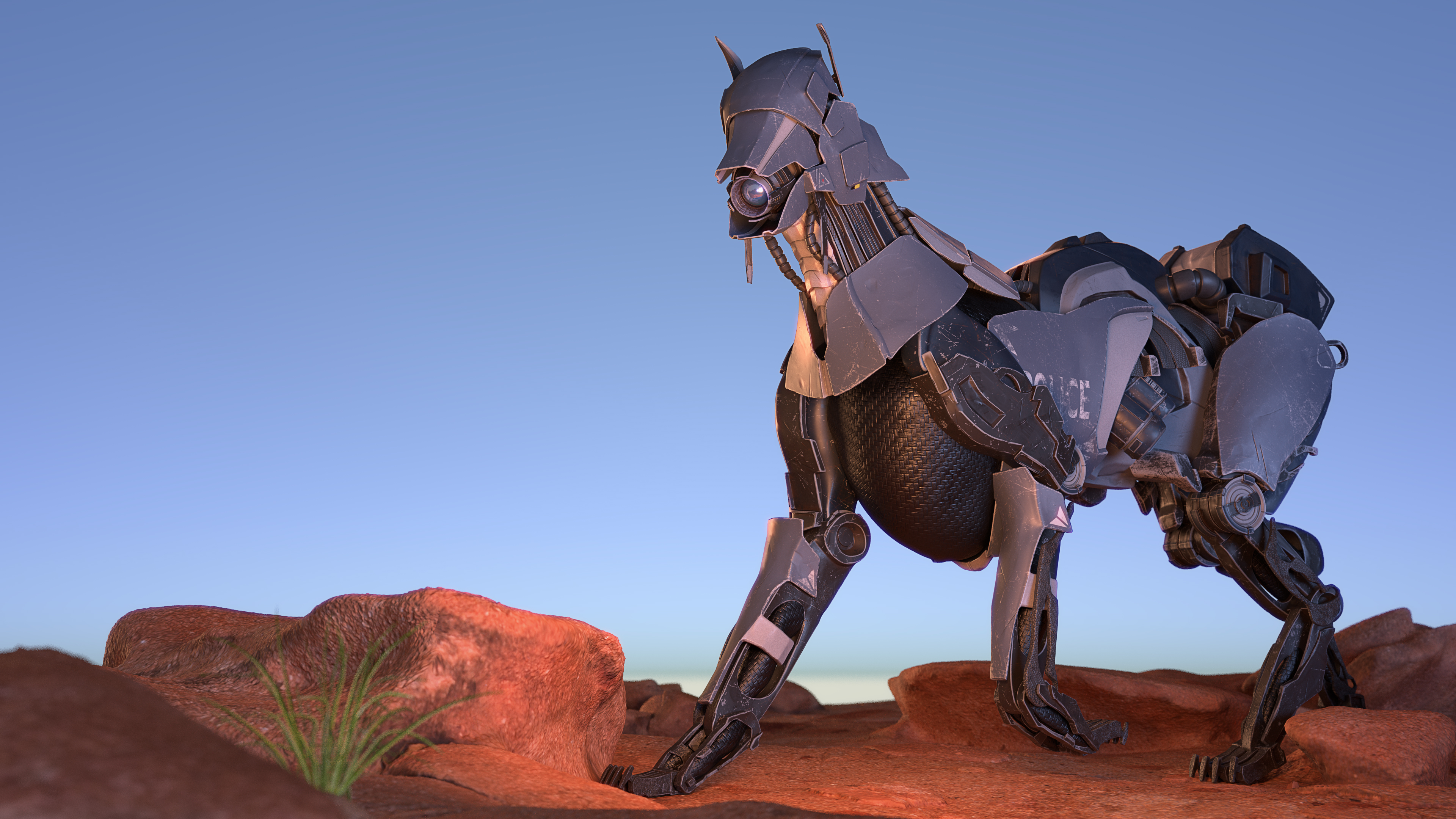My first hard surface project: A police CyberDog inspired by the video game “Horizon Zero Dawn”.