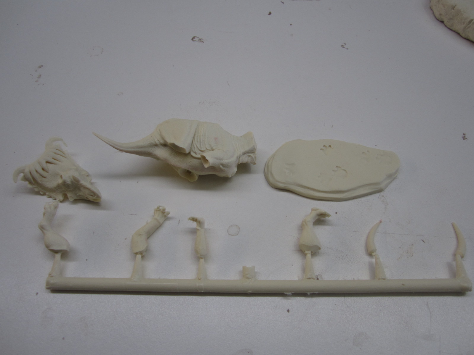 I’ll load these a little at a time. First up is the T.rex… Big surprise. Needs some feathers. The prints are from Moddler.com. Resin Castings are from The Alchemy Works.