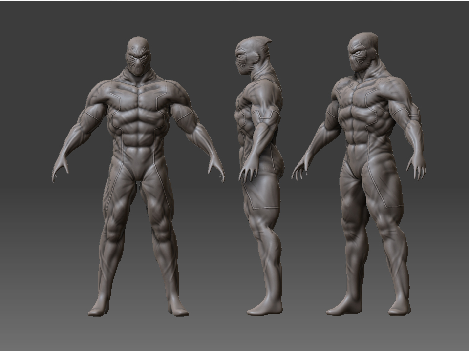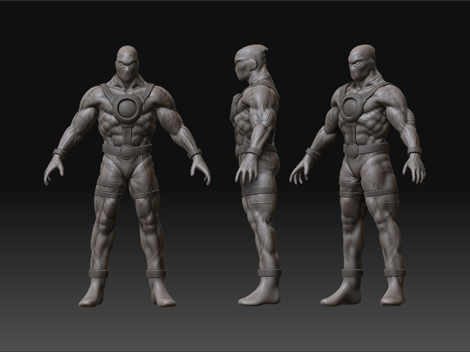 I am currently working on a model of Marvel character Deadpool. I am mainly using this as a learning experience as this is my first proper attempt to create a model using ZBrush. This is still work in progress as the weapons and belts still need to be added, as well as texturing before it is compete.