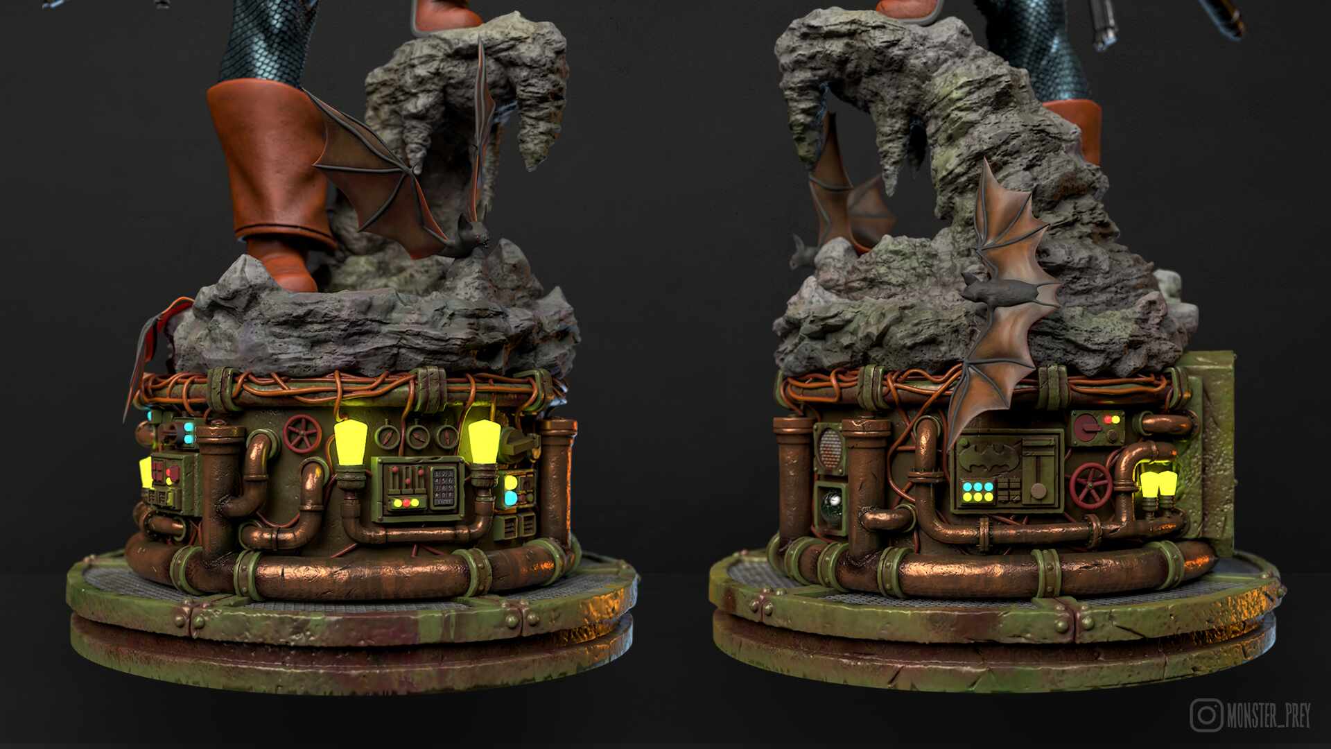 The Batman cave inspired me to create the base. I wanted to create something old-fashioned, with iron bars and pipes. I also thought about making Batman in a mirror pose so he could be posed opposite Deathstroke, but for now, that’s just an idea. Too many of those Batmans have already been created.