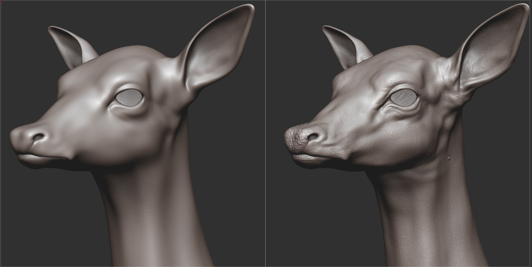 Zbrush was use to do the base mesh and sculpting all the skin and muzzle details
