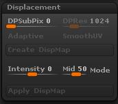 Displacement maps, normal maps and textures all rely on UV’s. If UV’s are disabled, you can’t create a map. After enabling UV’s you’ll still need to actually assign UV mapping to the model before you’ll be able to successfully create a texture or displacement map.