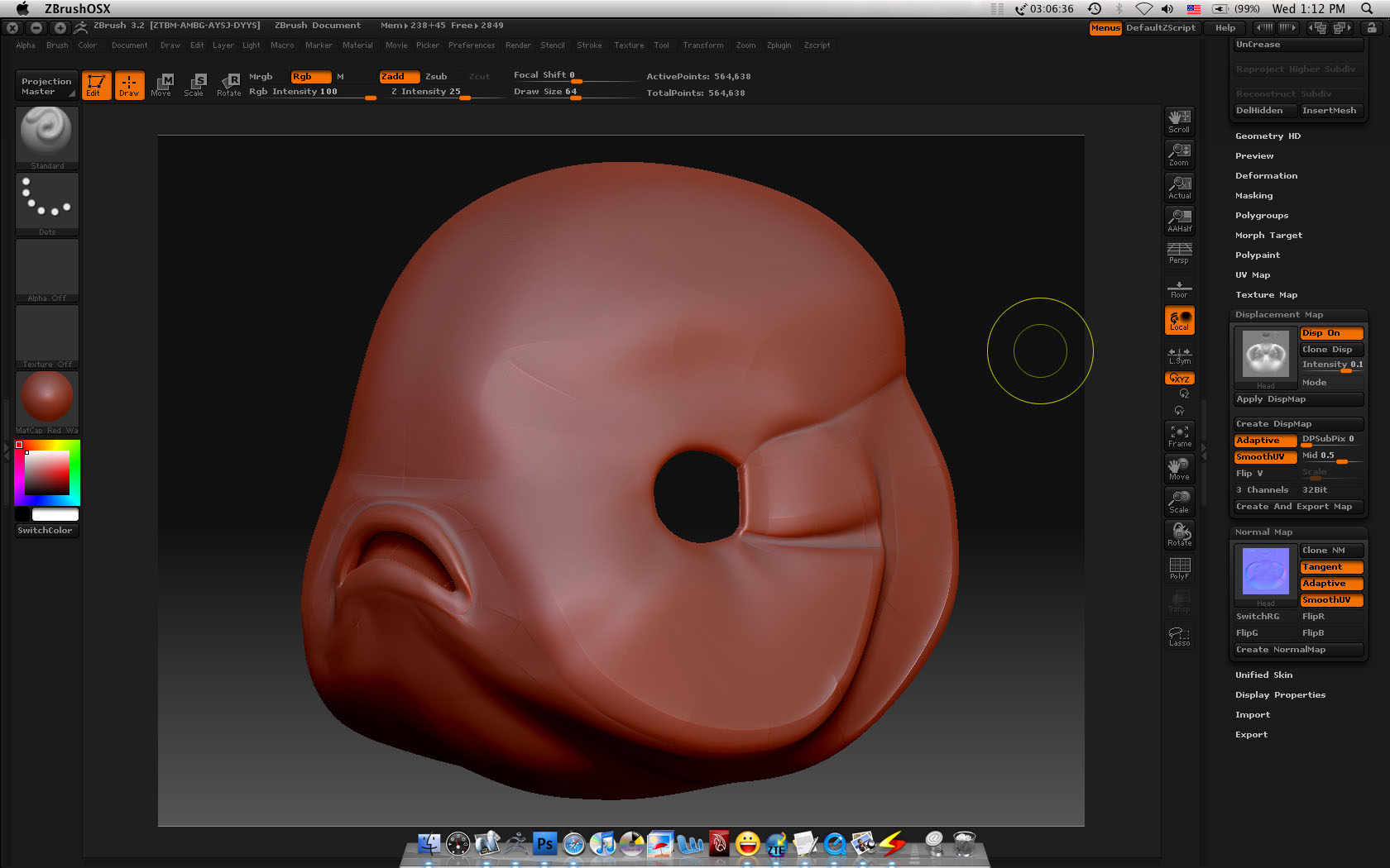 In zbrush, i directly divide the geometry to lv6, and without displacing anything using any brush, i created the displacement map and normal map.