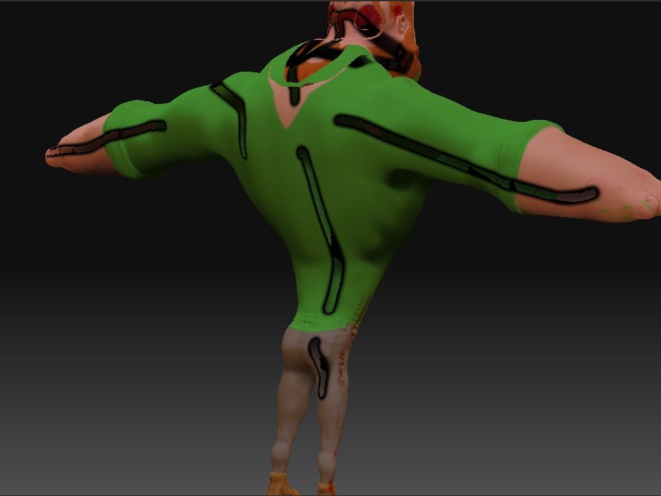 When I pick up ZAPP Link the changes I made end up on the back of the model. I used a thick black line and just drew some obvious lines on it. It seems the parts at the core of the line (not the feathered edge) are transparent (perhaps it flipped their normals). I also have to adjust the double sided bit every time.