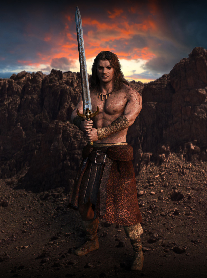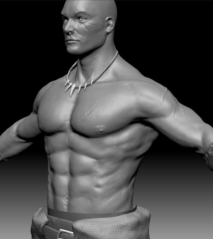 Here are some WIP images of what will be a game-res (high-end) character model of Conan the Barbarian (recent movie fame/Jason Momoa likeness not Ahhnold) for my portfolio. Please disregard the featurelss flap thing on his belt, as that will be an alpha plane later on in the process. In addition, the rounded edges on his clothing will be going away for the same reason. Comments/crits welcome! I will be working on his sword/hair/Uving next. I also plan to give him an expression kind of like the one in the reference. This will probably take a while since I am working full time while I do this, so bear with me! I used Nick Zuccarello’s awesome base mesh for this model.