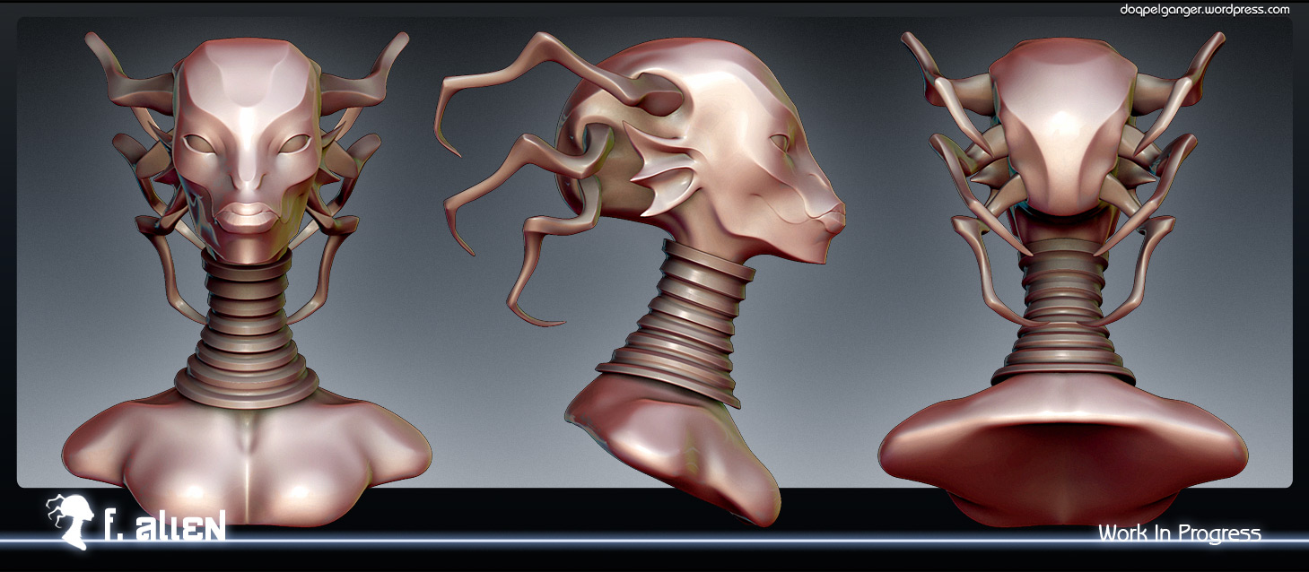 This is beautiful work! I really like your use of hard edges and graceful curves in your designs, very inspiring. I particularly like the female alien head you’ve posted last, great job!