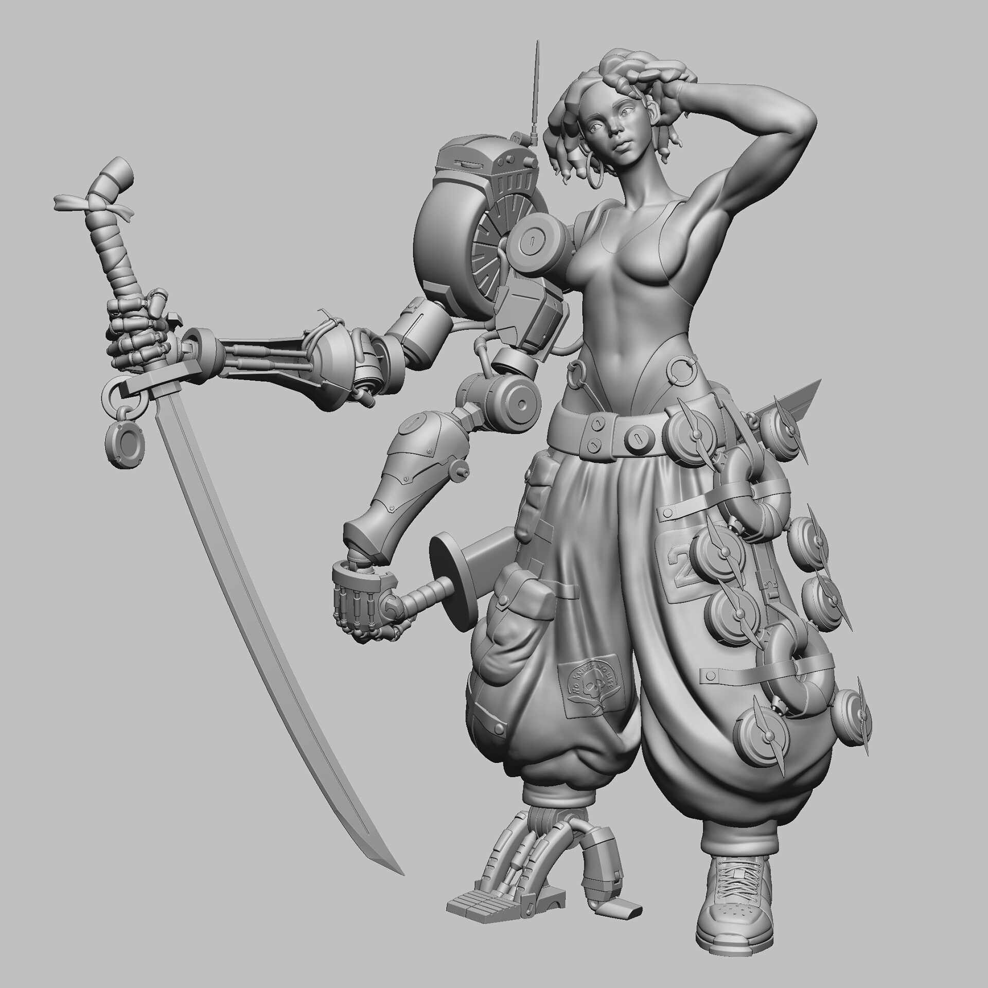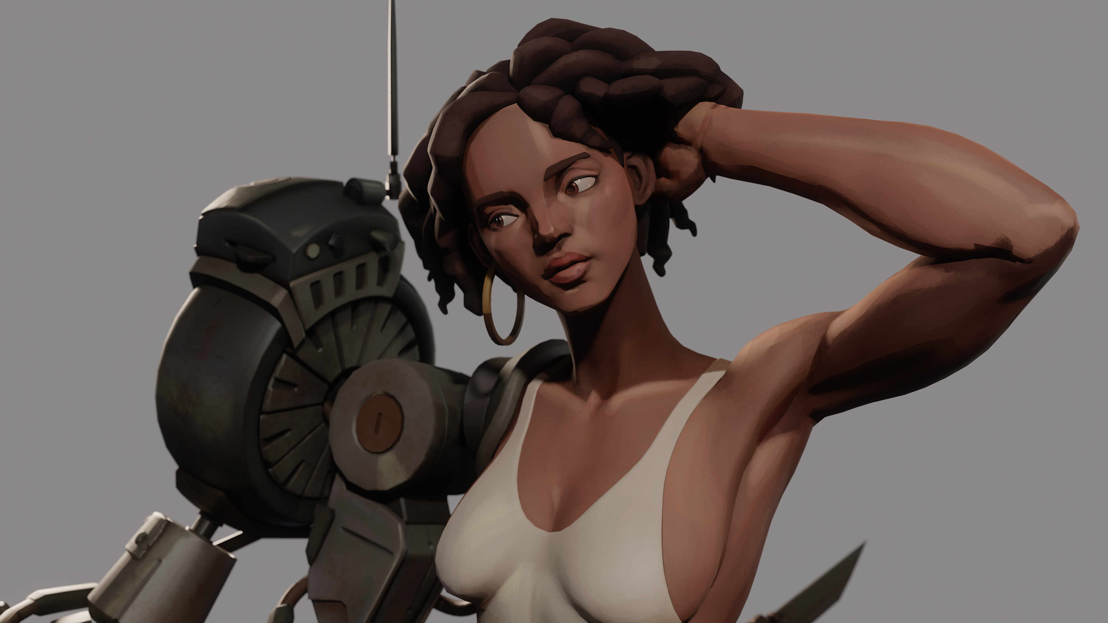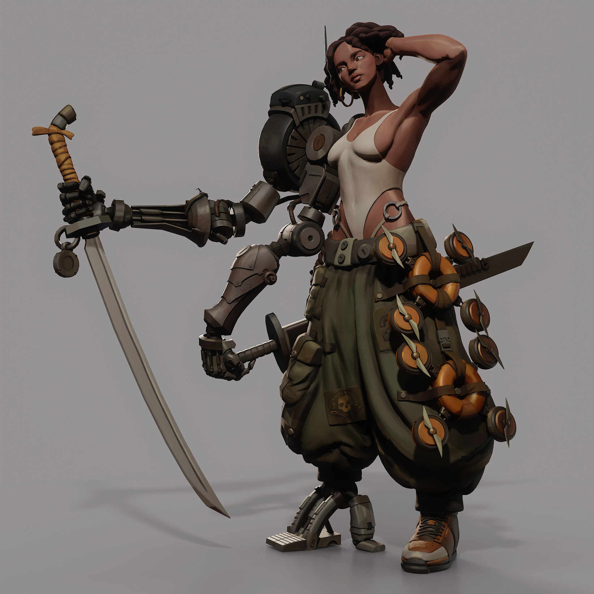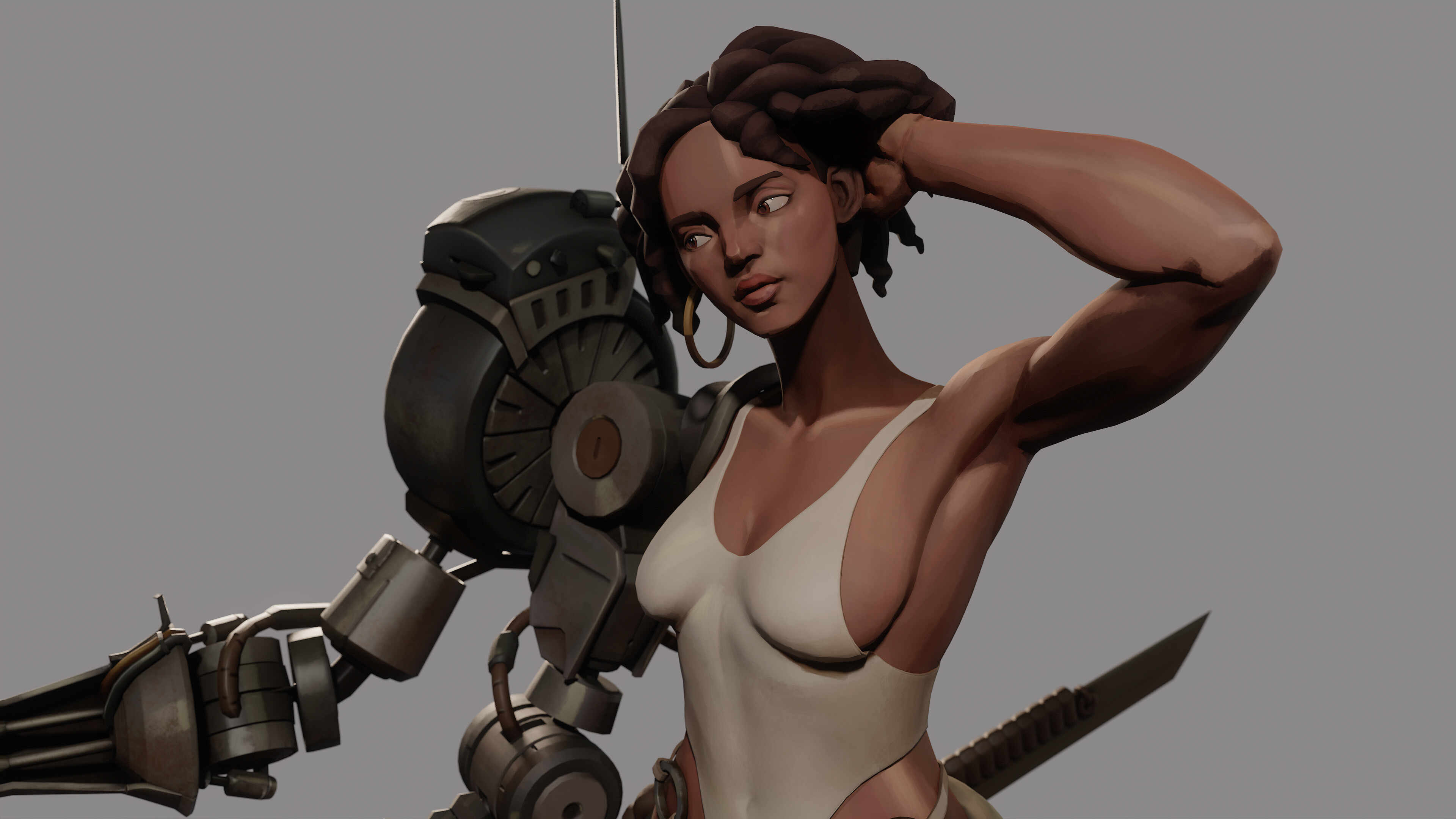 I love the original art by Seungho Lee and wanted to see how I could faithfully translate it into 3D. I took this project as an opportunity to learn about hand-painted texturing, something I’ve done sparingly in the past, and the way to use normal maps to try and give it more of a painterly look. I do think I could’ve gone all out in making it look even closer to the concept art, but for this project, I wanted to create a game-ready character using the concept art as a base for the style of this hypothetical game character. I hope you like it!