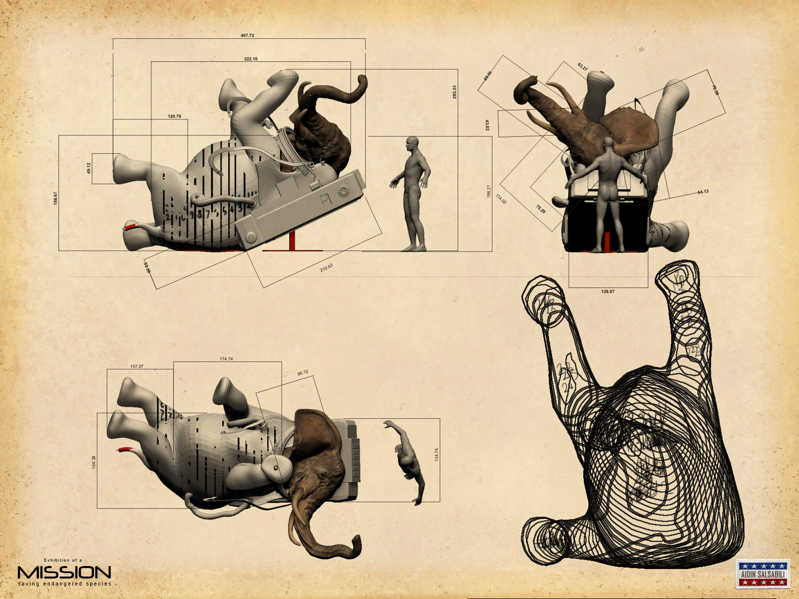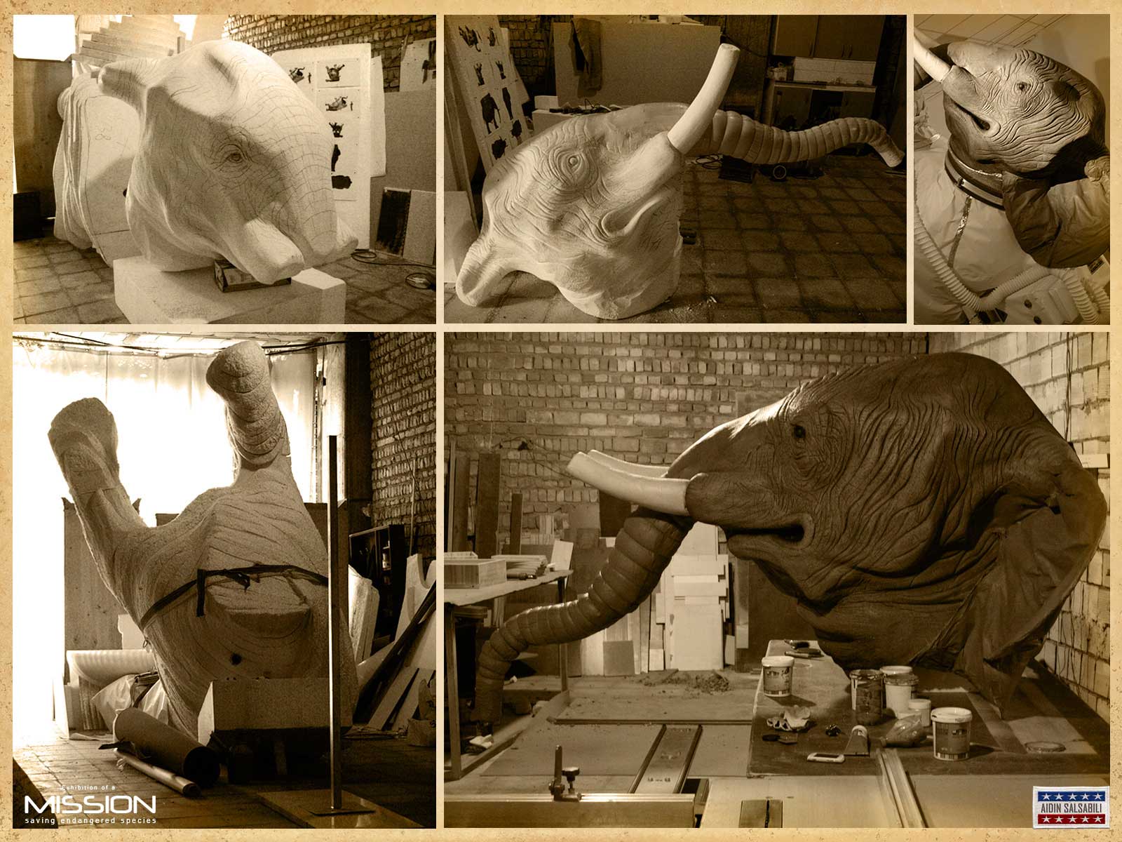 Elephant astronaut is a model for my conceptual art show named “mission”. It is about endangered species. The show displayed at the Iranian artist forum last month.