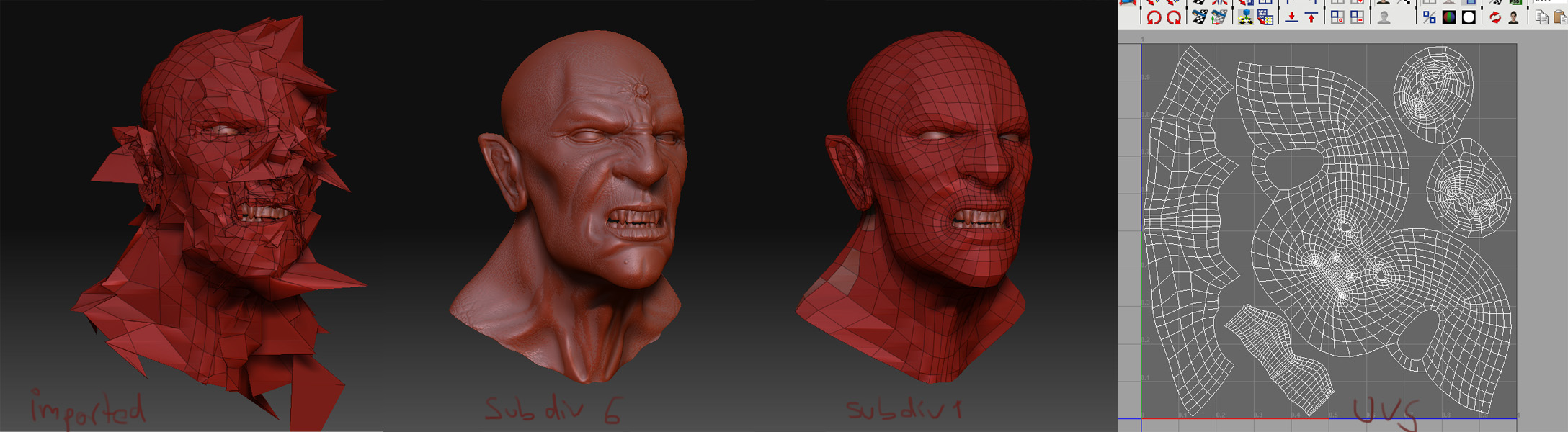 So i’ve been plagued by an error as of lately. Whenever i Import the same model .obj into the .ztl all seems well until i go from subdiv level 1 to something higher and the polys explode (see first head) and its a lot worst than that example.