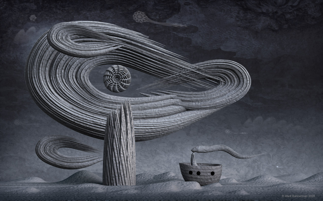 The absence of color gives the scene a foreboding atmosphere - love the addition of the paper like texture!