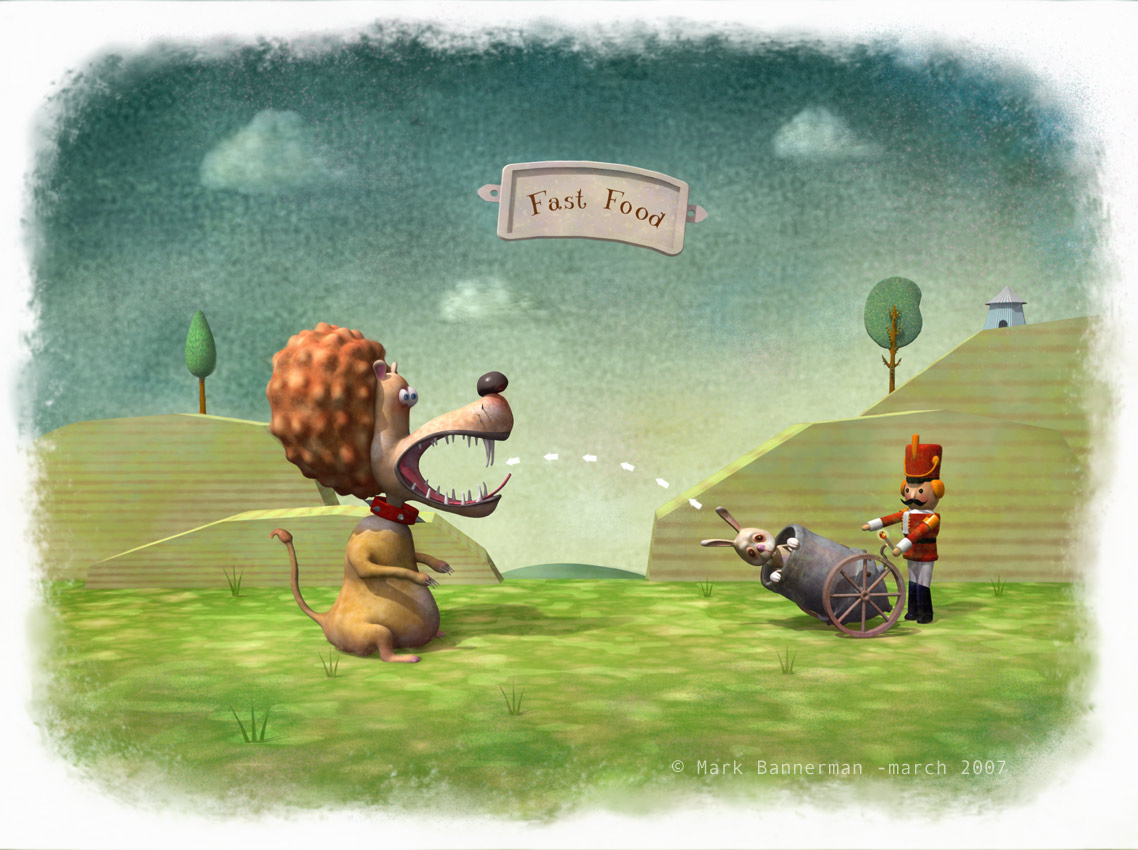 The thumbnail oozed with flooze and spoke to me, and I was not dissapointed. Nicely done! Good to see your humorous, gentle scenes again, (although, the rabbit might not agree.) Mark. 50.