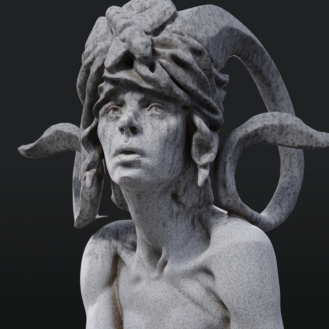 Marble statue of a faun. Sculpted in Zbrush, shading and rendering inside Blender.