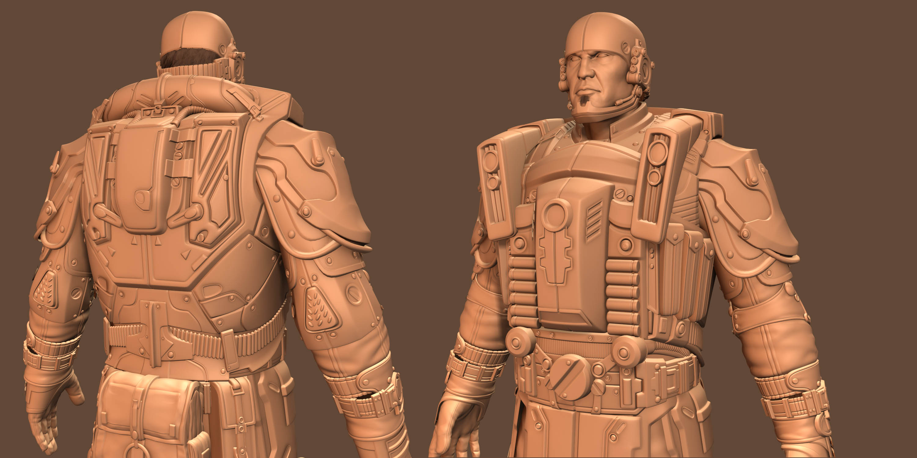 Nice detailing on the character! I’d agree with Turchik. It’s got alot of potential. What I also would suggest is that you take a look at the characters silhouette. Even though you got lots of nice detail, he feels a bit like a tube if you know what I mean? If you render the character flat shaded in black agains a white background you can get a better look at the overall shape and maybe figure out where to add additional geometry to make him look a bit more interesting.