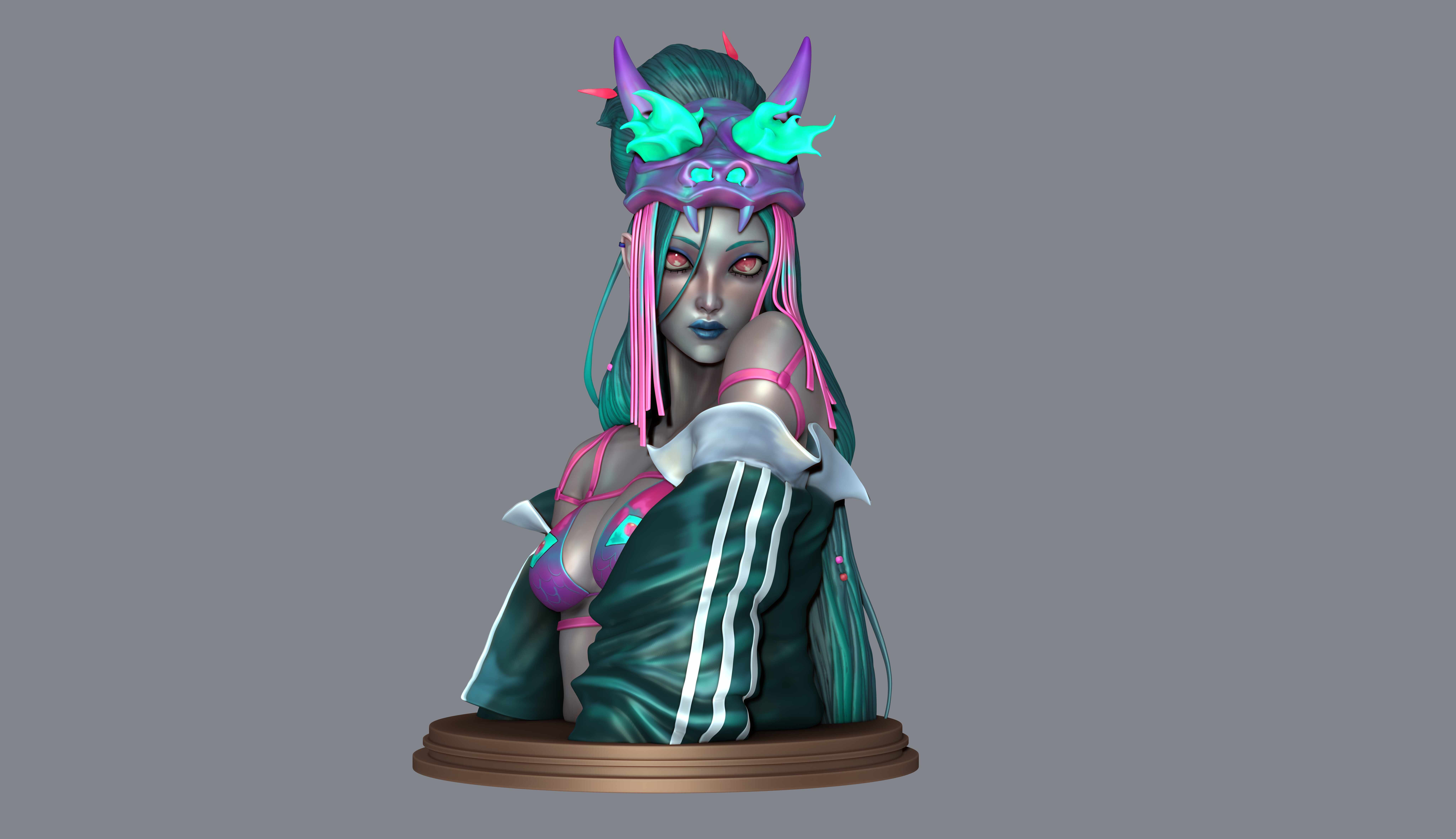 My intention was to bring to the three-dimensional space the balance between the mystical and the contemporary, while maintaining the character’s expressiveness, vibrant colors, and strong presence.