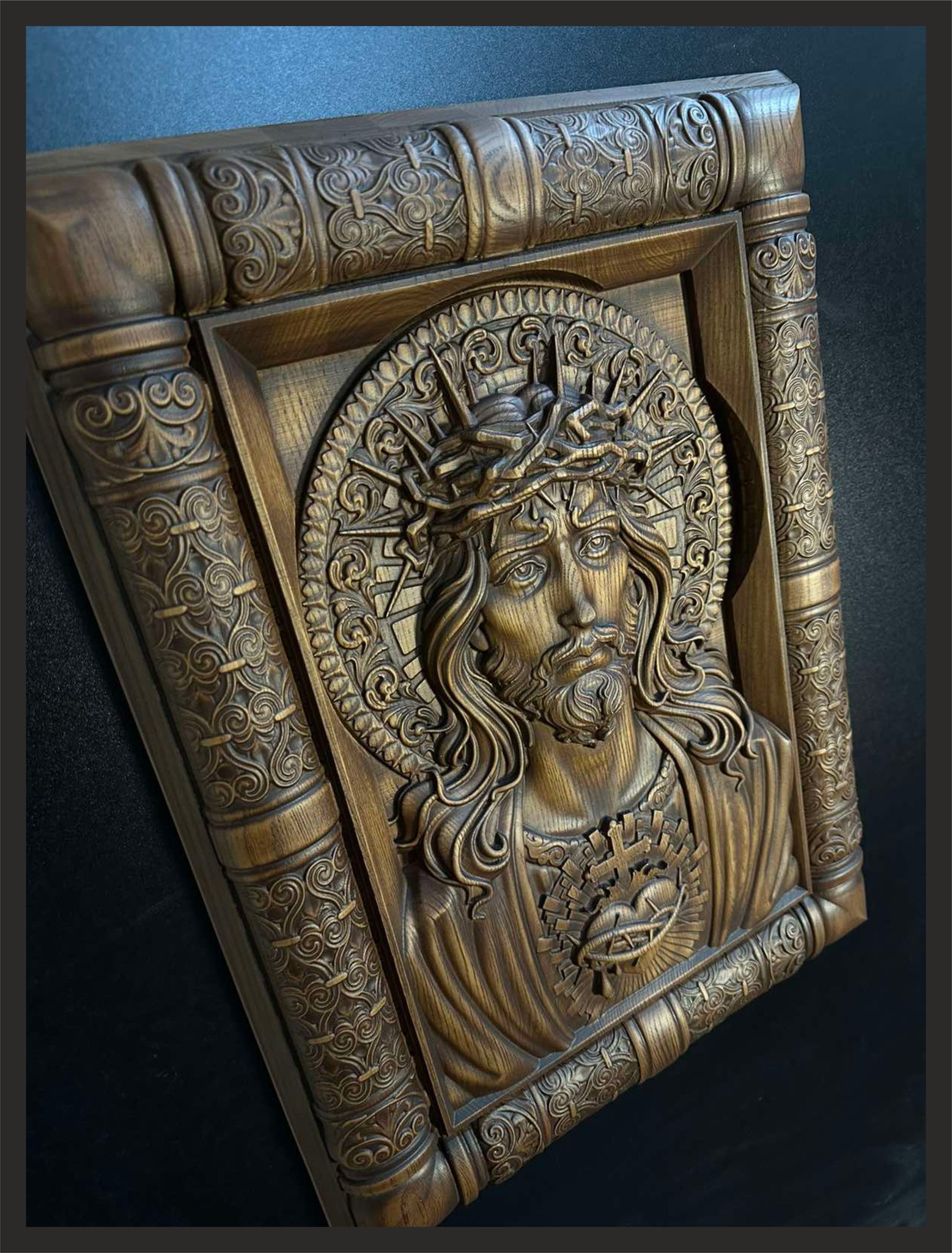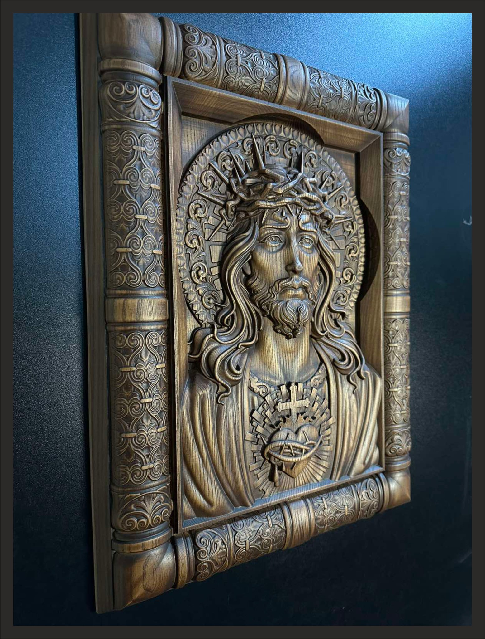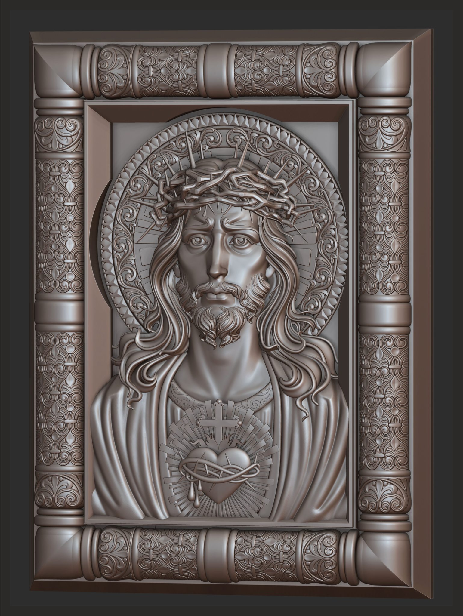 Well, here’s the finished result. Sometimes the process of creating a painting takes quite a long time. It all starts with an idea, then a sketch, which I do in pencil, followed by the creation of a 3D model (mostly in Zbrush), naturally creating a prototype on a 3D printer to be able to correct any issues, and only then the final work is created using a CNC machine.