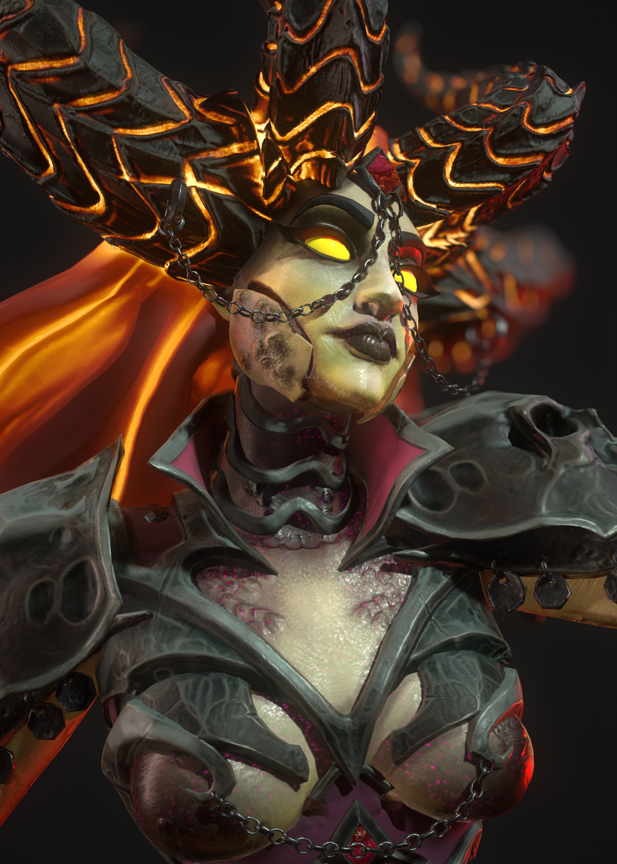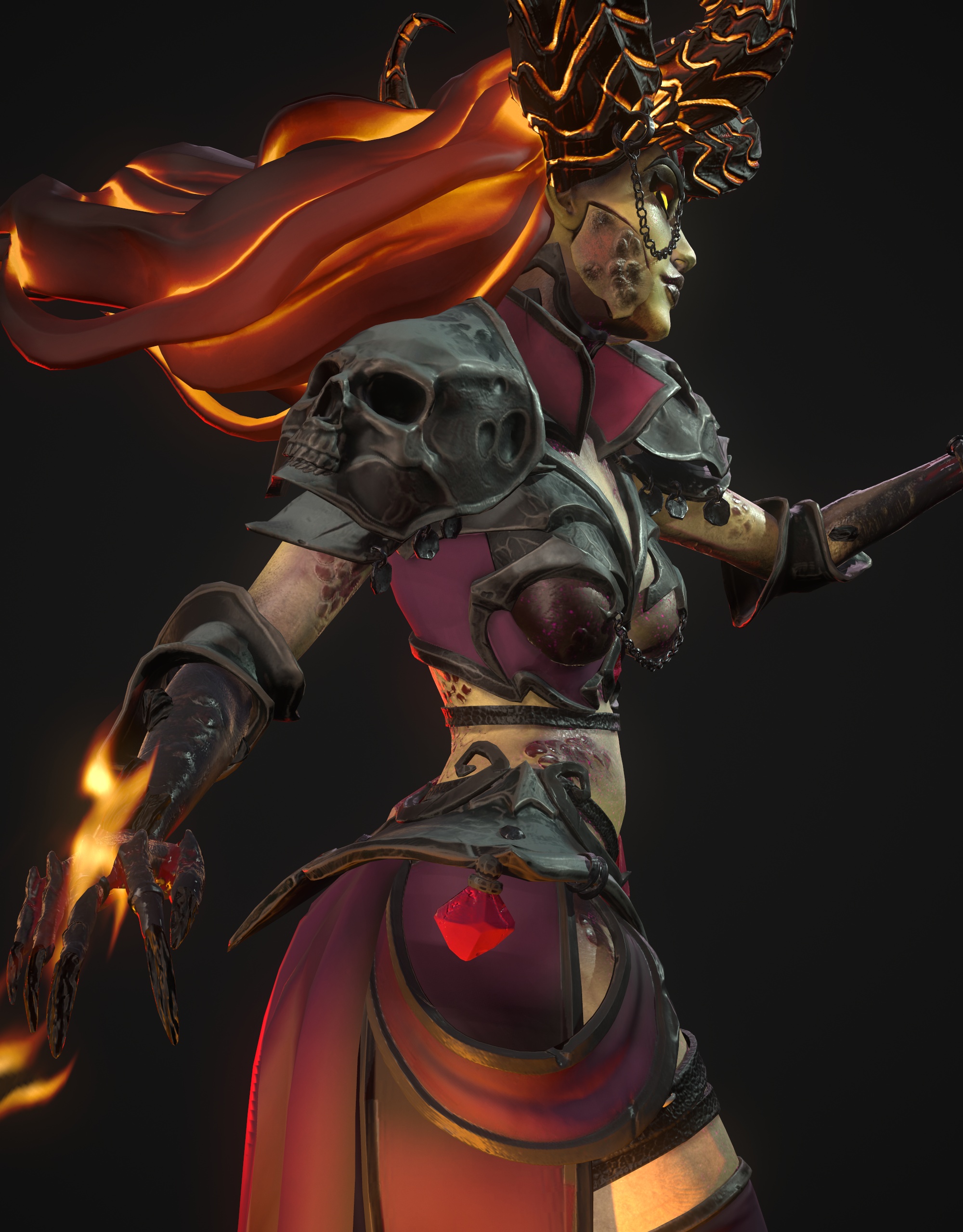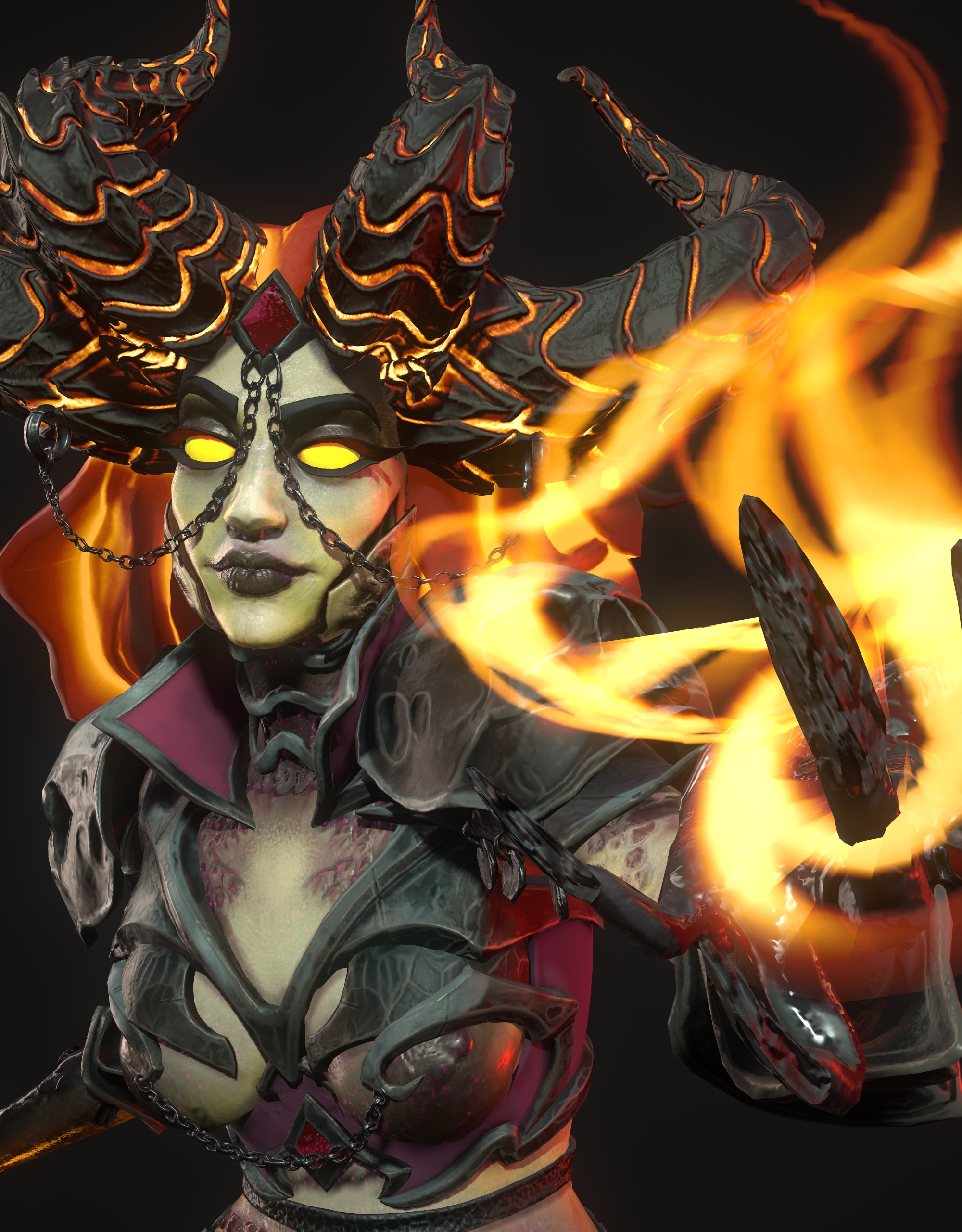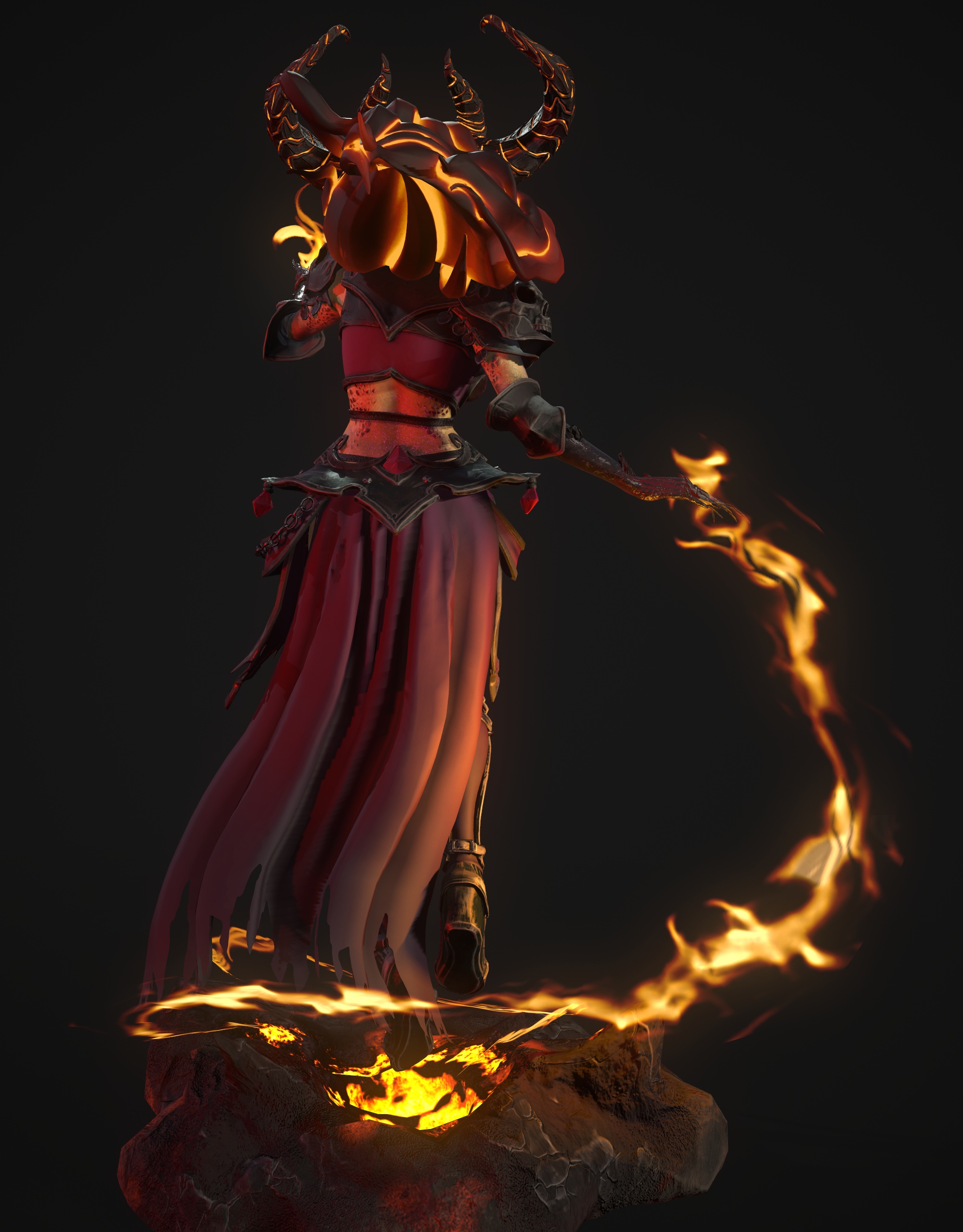 I want to share my personal work I did for ArtWar contest. It’s a fire mage creature. I was inspired by diablo series. Sculpted in zbrush, textured in substance painter and rendered in marmoset.